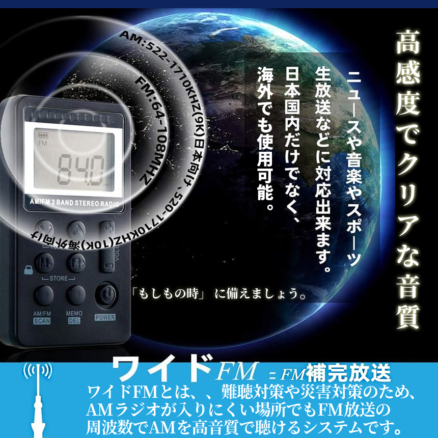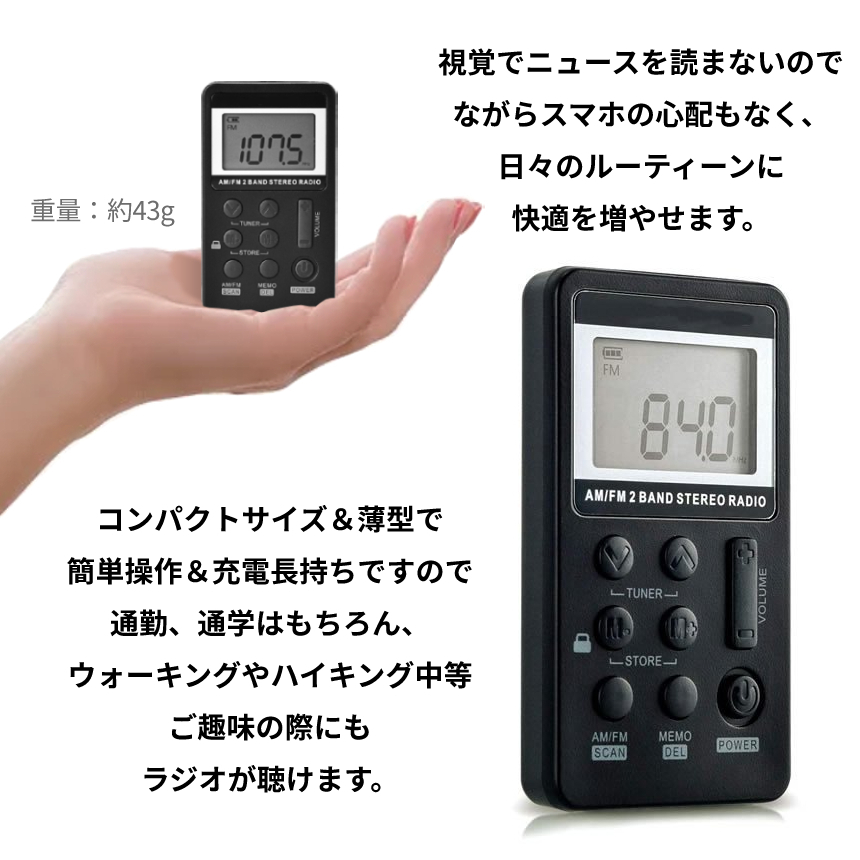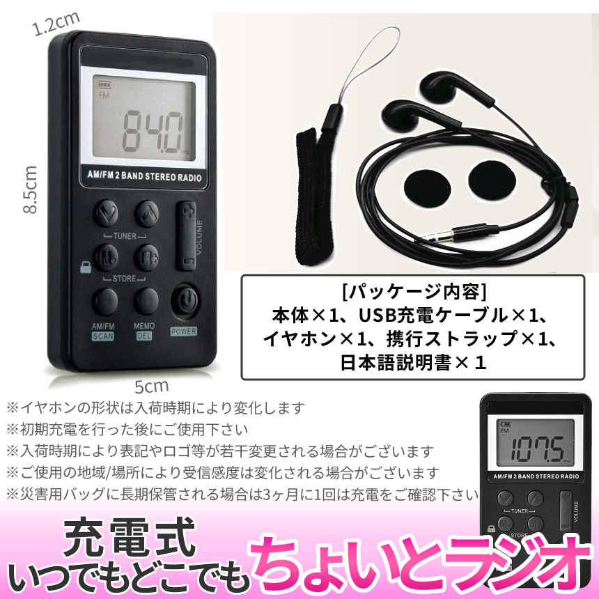 | 送料無料!!! 送料及び下記のご案内をご確認の上、ご入札お願い致します。 離島地域を除く九州、四国、本州まで送料無料。 ※北海道は+1000円、離島地域及び沖縄県は+3000円にて承ります。(発送前に加算) ※画像内にカラー及びサイズ等の選択が可能と記載がある場合がございますが、 お届けする物はタイトルまたは商品説明文に記載の物です。 ★※注文後のカラー変更や異なるカラー・サイズ指定等は一切承っておりません。 ※★※仕様(ロゴデザイン/ロゴ有無等も含む)は予告なく変更する場合があります。 ※多少の汚れや小傷がある場合がございますがご了承ください。 梱包は簡易包装ですので、箱の角落ち等はご了承願います。 【小型通勤ラジオ】 \手のひらサイズの便利な充電型ポケットラジオ/ 立体ボタン採用で押しやすい♪ 余計な機能がないシンプルデザイン♪ バッグの中に入れたままでのブラインド操作も◎ 大きいLCD液晶ディスプレーで見やすい表示◎ DSP技術を採用されたミニデジタルラジオは 強大なデータ処理と安定性、受信感度が高い特徴があります。 FM&AM料対応ラジオ 日本国内だけでなく、国外旅行にも便利なミニラジオ。 USBケーブル充電だから電池や電源不要! 長期的に使用できPCやモバイルバッテリーで充電出来ます♪ 2-3h充電後10-12h連続使用 [安心の日本語操作説明書付き] ============== 【商品仕様】 パッケージ内容:本体1つ,イヤホン1つ,携帯ストラップ1つ [周波数] FM:64-108MHZ AM:522-1710KHZ(9K)日本向け 520-1710KHZ(10K)海外向け ※イヤホンの形状は入荷時期により変化します ※サイズは実寸ですが若干前後する場合がございます。 ※モニターにより色合いが若干前後する場合がございます。 ※輸入品ですので多少の臭いやスレ傷、汚れはご了承ください。 =========== ![]() ![]() ![]() ![]() ![]() ![]() ![]() |