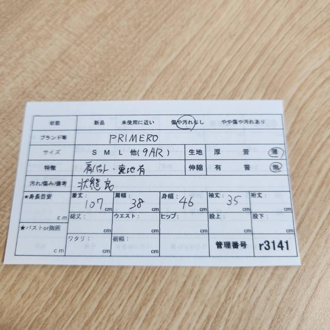 着丈107cm、肩幅38cm、身幅46cm、袖丈35cm