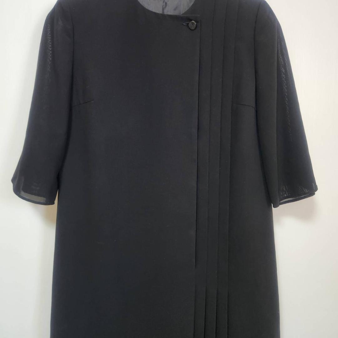 フロントにはプリーツデザインが施されており、シンプルながらも華やかさのある一枚。半袖タイプなので、通年のセレモニーや冠婚葬祭に活躍します。