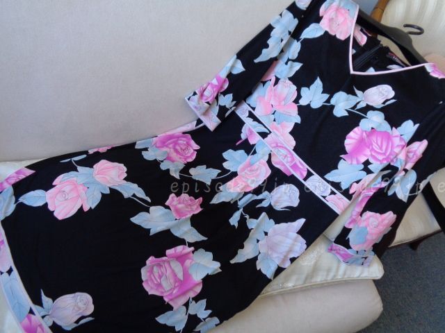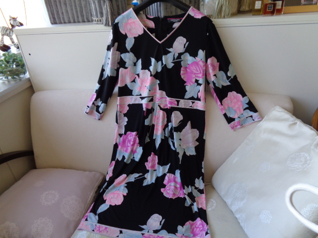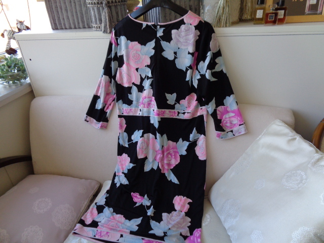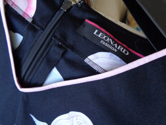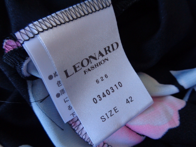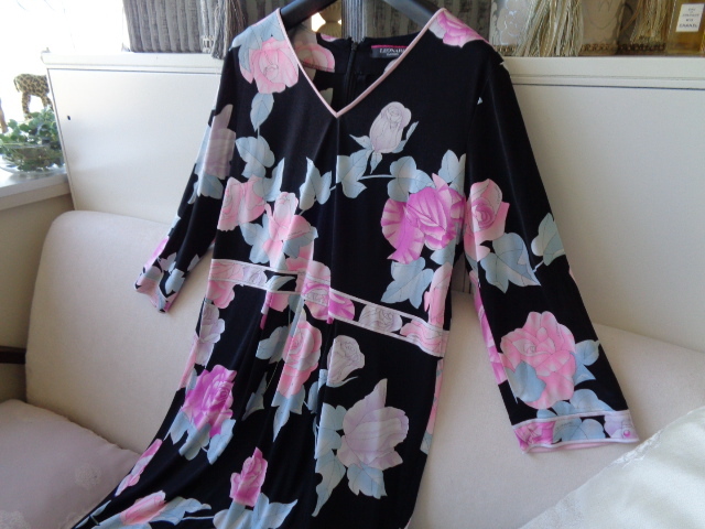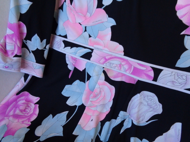 レオナール 美品 * エレガントな薔薇プリント 五分袖ワンピース
