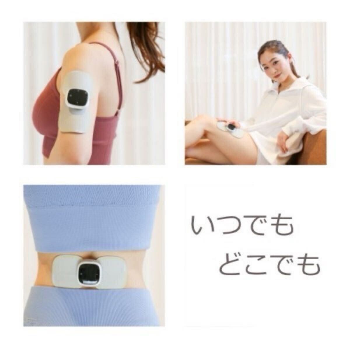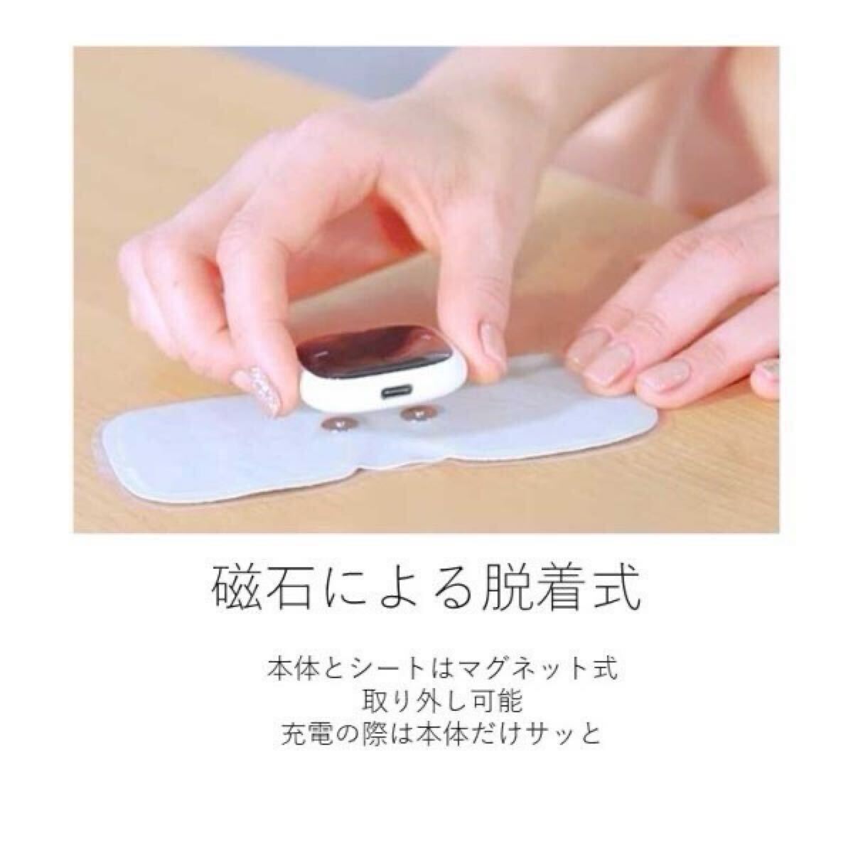 シートタイプなので腕、肩、お腹、腰、ふともも、ふくらはぎ気になる部分に張るだけでご使用できます。本体とシートはマグネット脱着式。