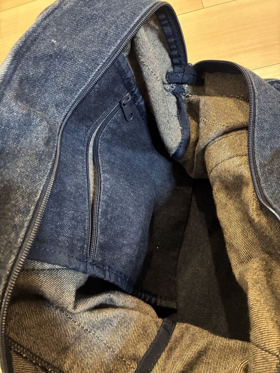 旅行に使えるバッグです。ファスナー付きなので中身が見られたり、飛び出すことはありません。