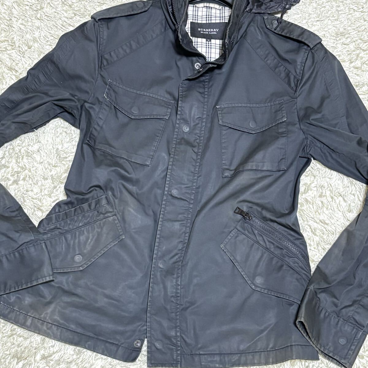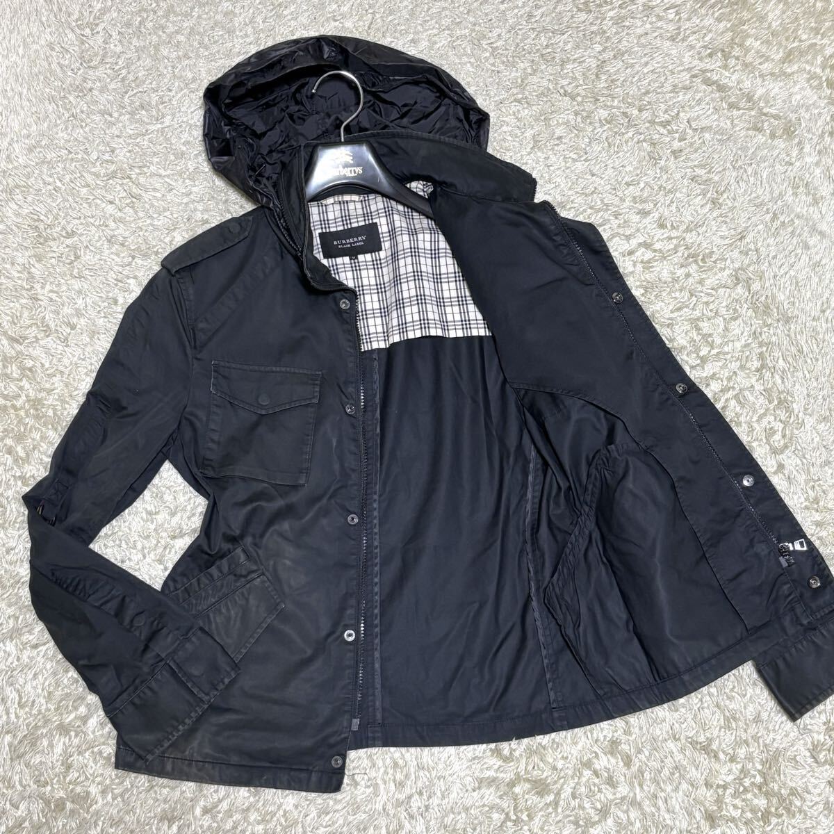 入手困難●バーバリーブラックレーベル シャドーチェック ブルゾン パーカー 2way フード着脱可 BURBERRY BLACKLABEL メンズ 黒 ジャケット