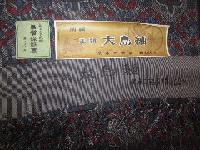 即決商品(着物屋・蔵出し)正絹・大島紬・伝承工芸品(古布・幾何学模様未使用着尺反物)貴重・珍品