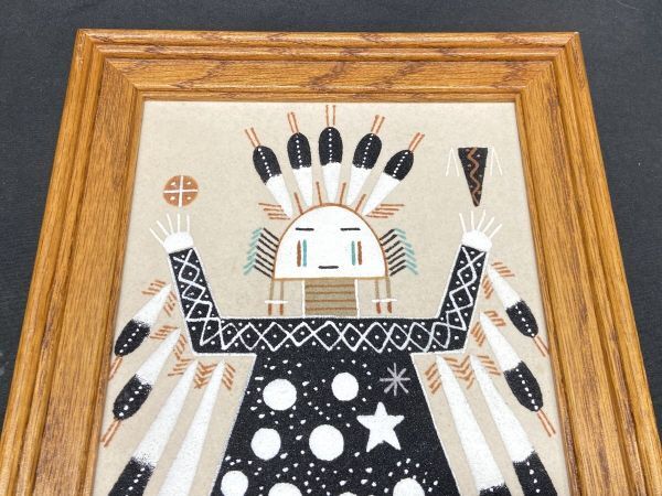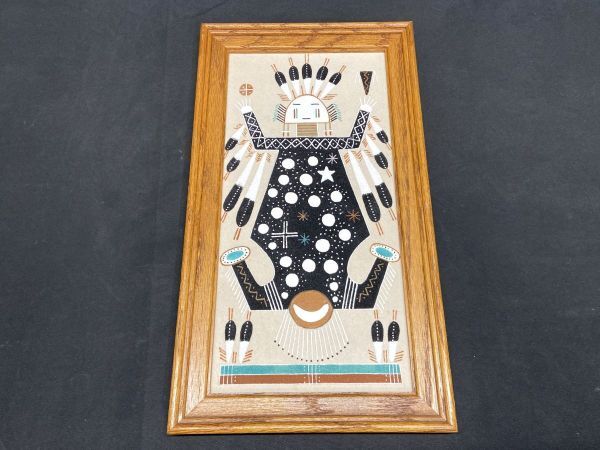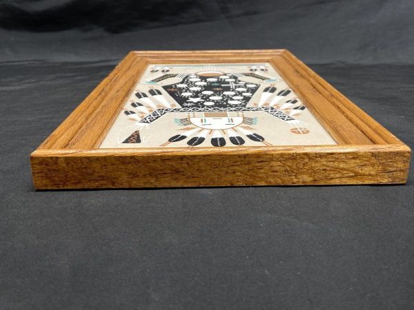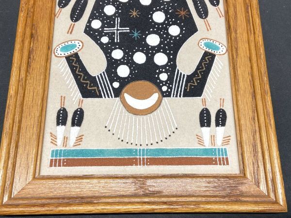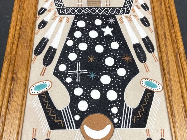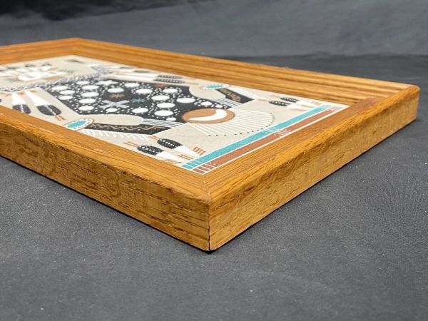 | 【R200】美品 NAVAJO Sandpainting ナバホ族 砂絵 サンドペインティング インディアン 工芸 サイン入り 19.5cm×35cm(b | ||