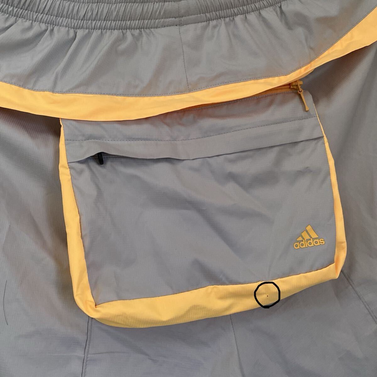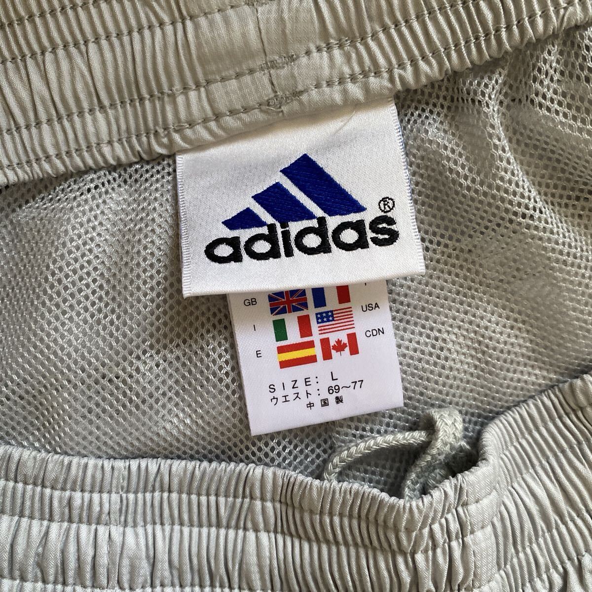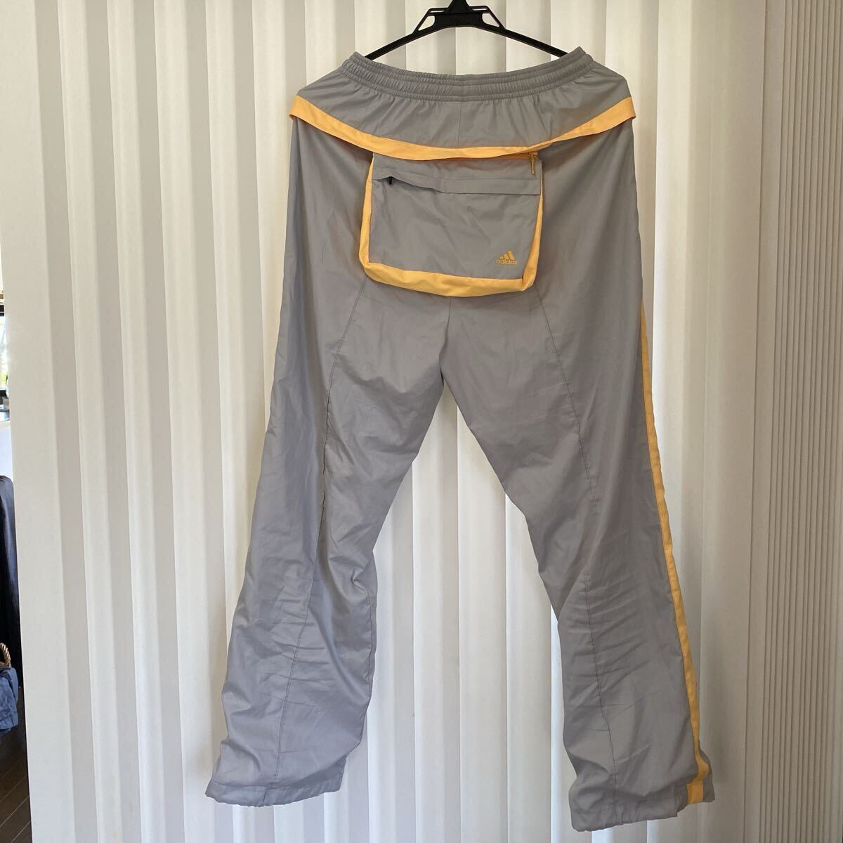 本商品はアディダスのボトムス、Lサイズです。ちょっと大きめですが、裾を絞って履くことができます。