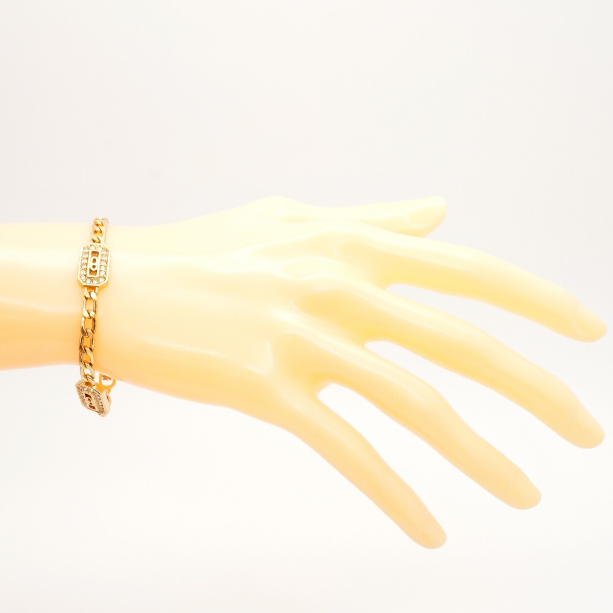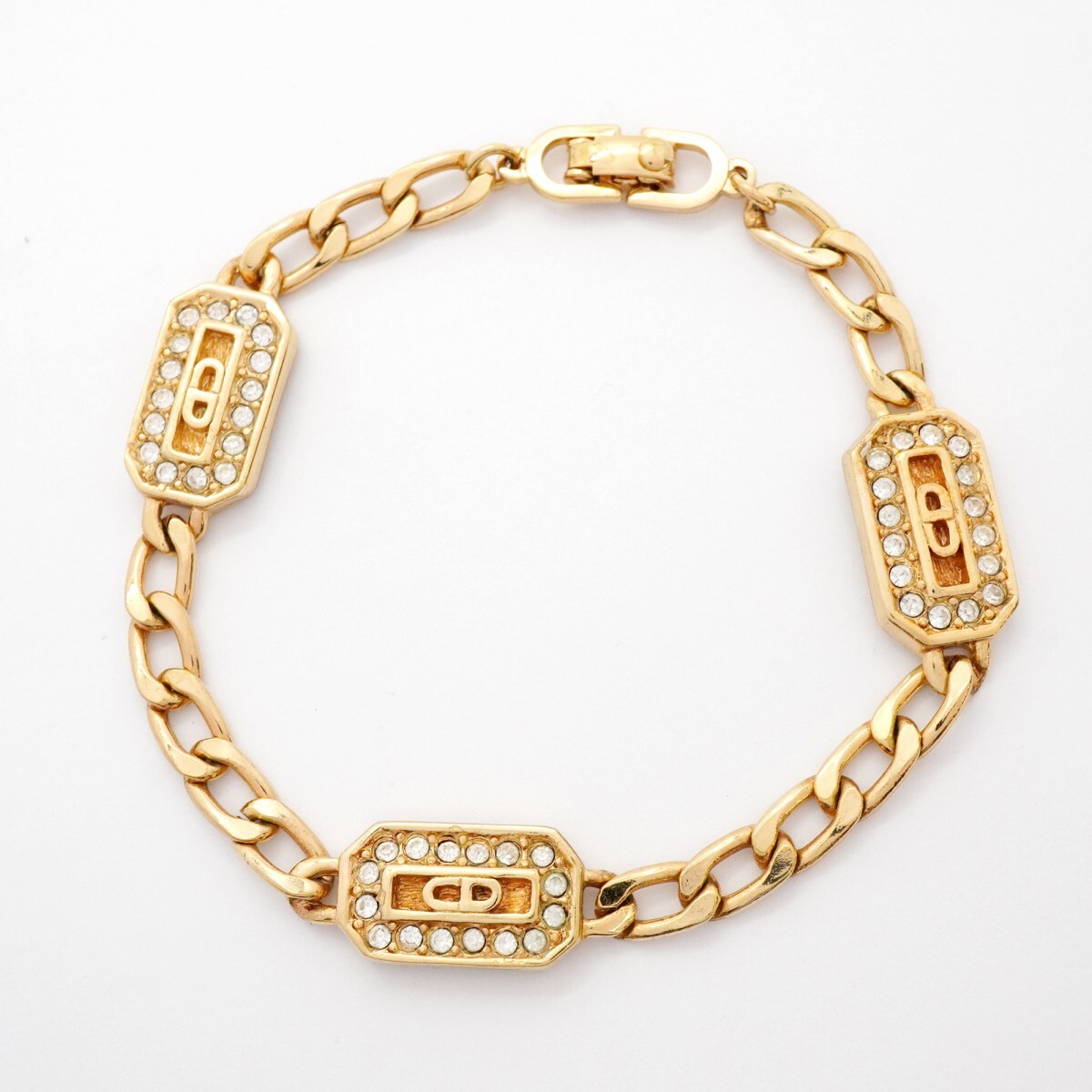 【5jib0340】クリスチャンディオール ブレスレット CDロゴ GPメッキ ラインストーン ゴールド【中古】レディース