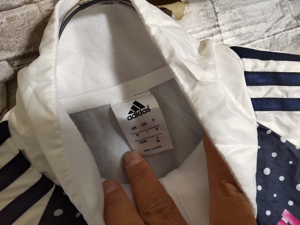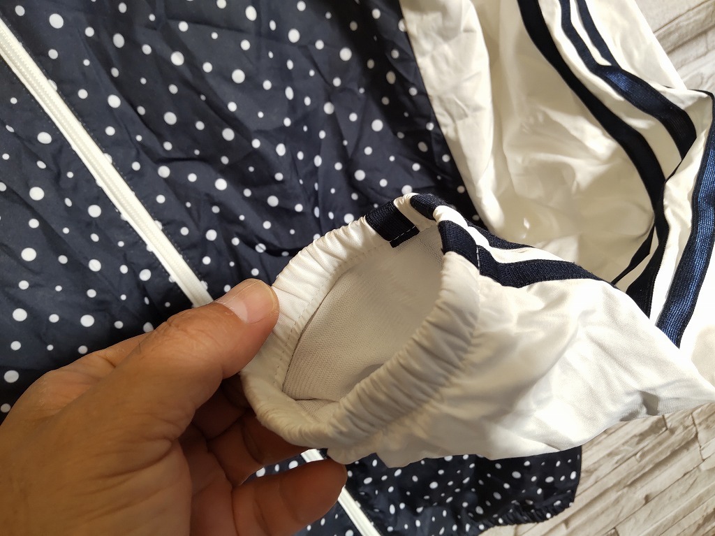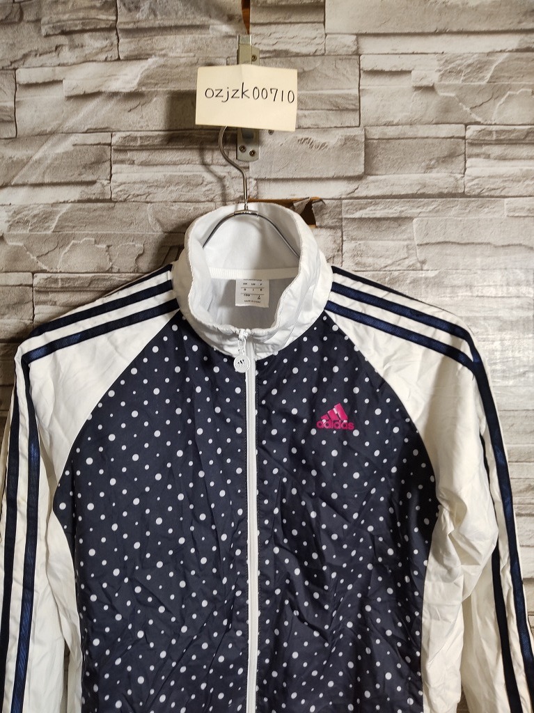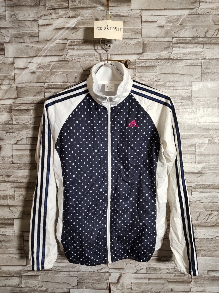 women's J399 adidas アディダス climaproof クライマプルーフ 水玉 ドッド柄 ウインドブレーカー ジャケット M ネイビー/ホワイト