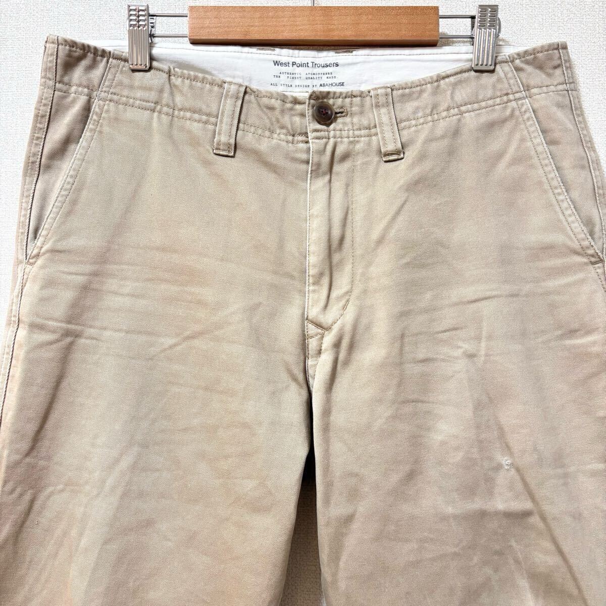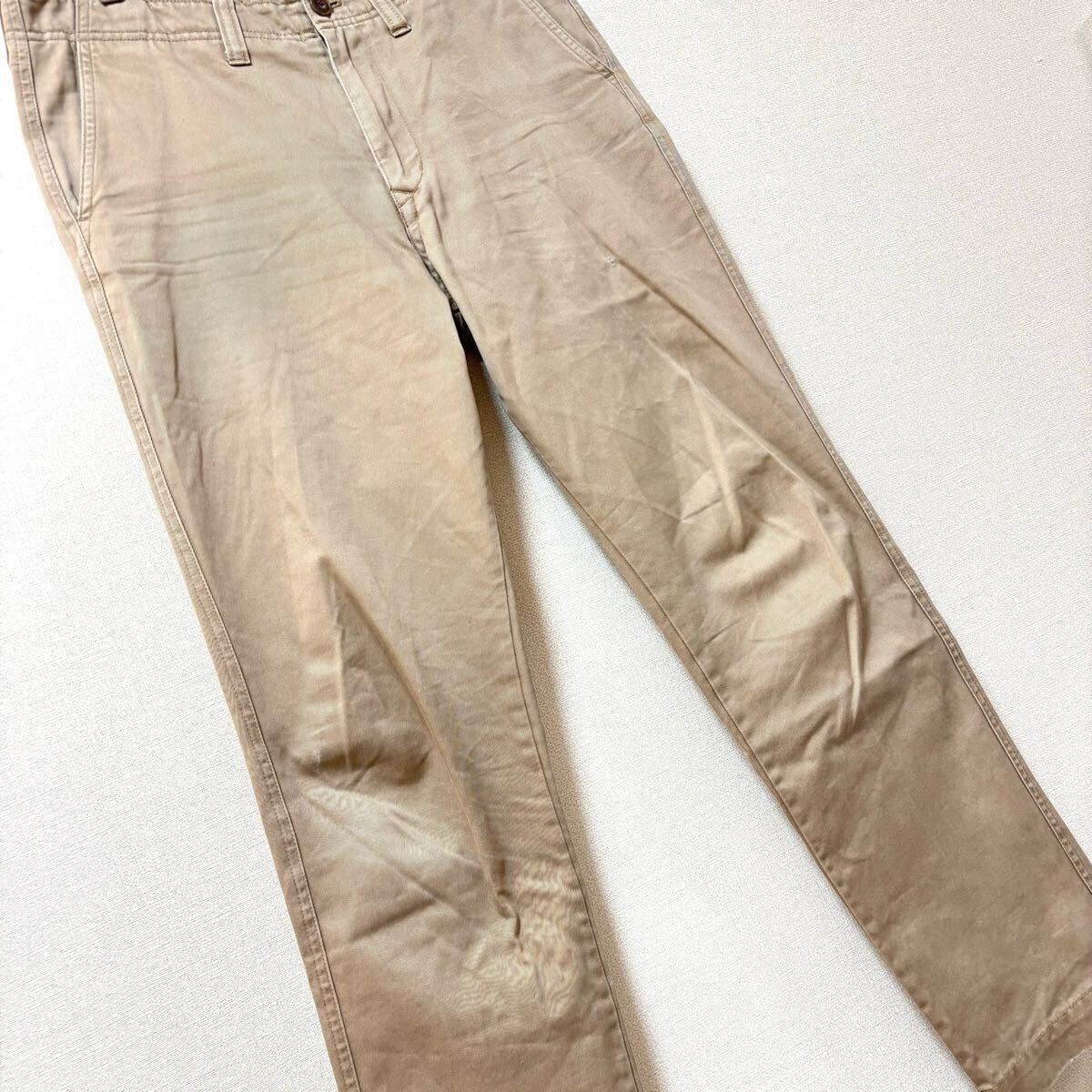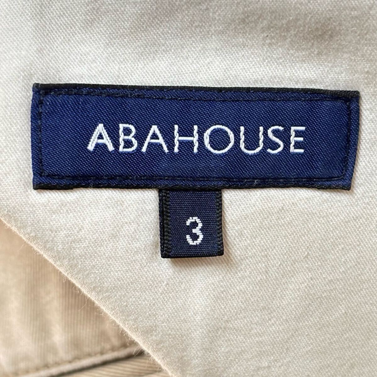 ABAHOUSEのチノパンです。ハリのあるコットン100%素材で仕立てられたストレートシルエットのパンツになります。カジュアルにもクリーンにも合わせやすいベーシックなスタイルです◎フロントに一部に薄いシミがありますが、その他に目立つキズや汚れなどはないのでまだまだお使いいただけると思います^ ^