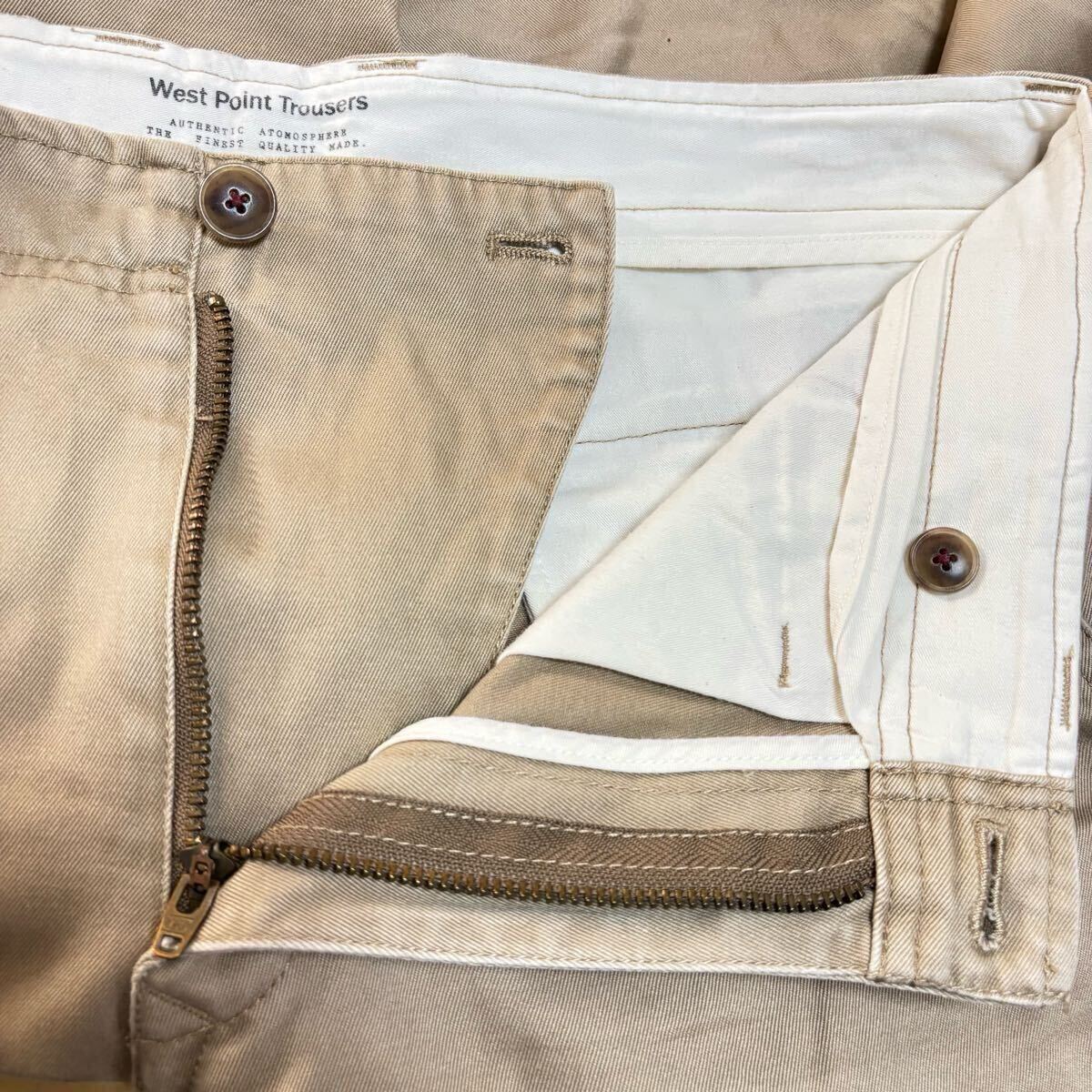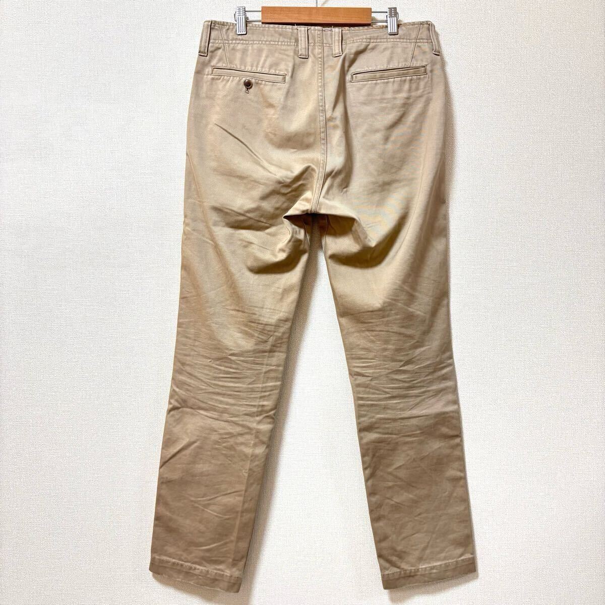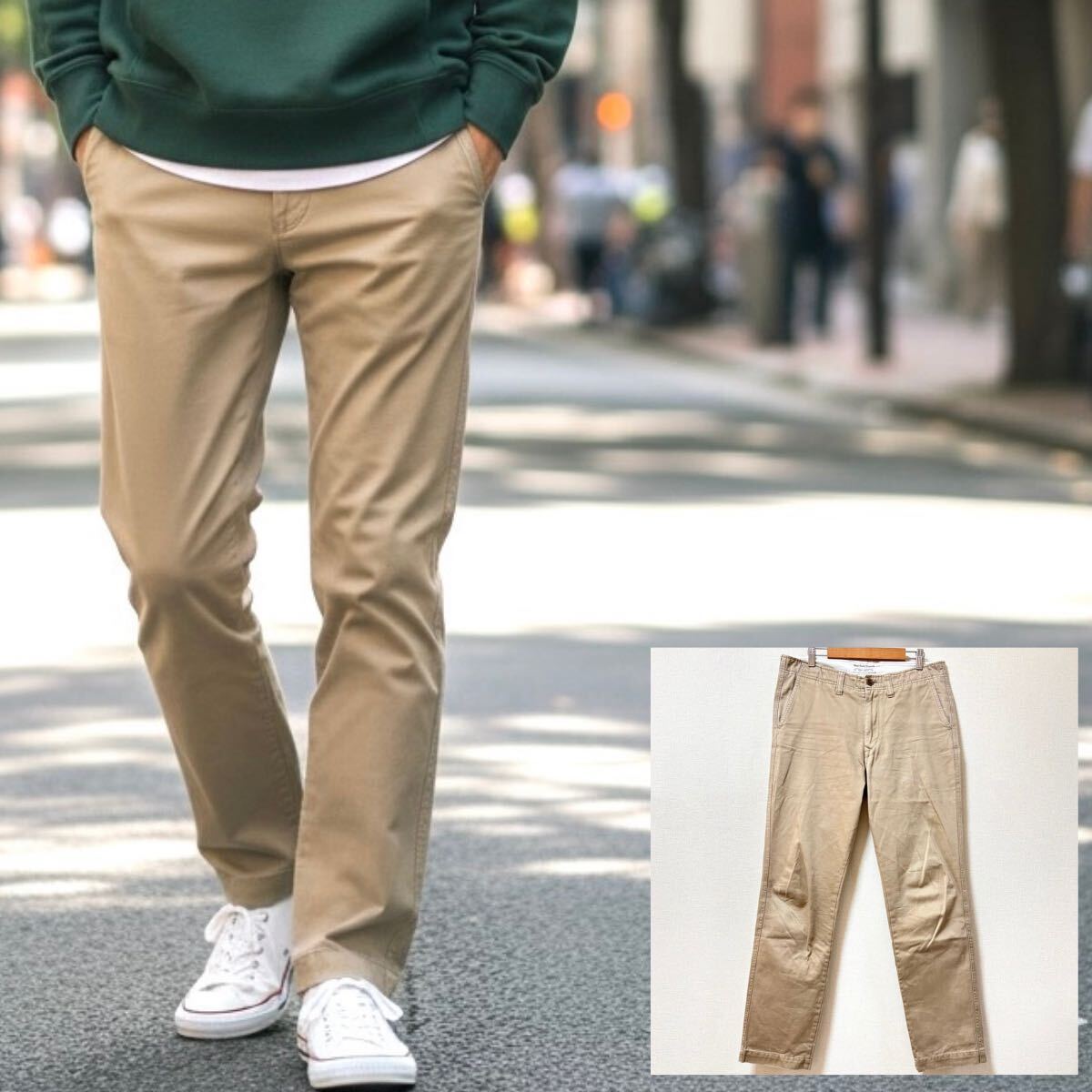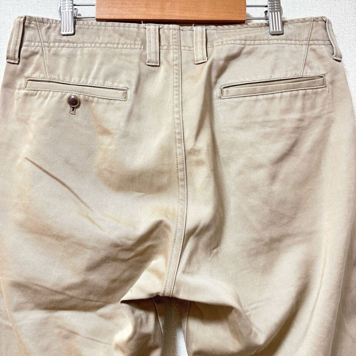 ABAHOUSEのチノパンです。ハリのあるコットン100%素材で仕立てられたストレートシルエットのパンツになります。カジュアルにもクリーンにも合わせやすいベーシックなスタイルです◎フロントに一部に薄いシミがありますが、その他に目立つキズや汚れなどはないのでまだまだお使いいただけると思います^ ^