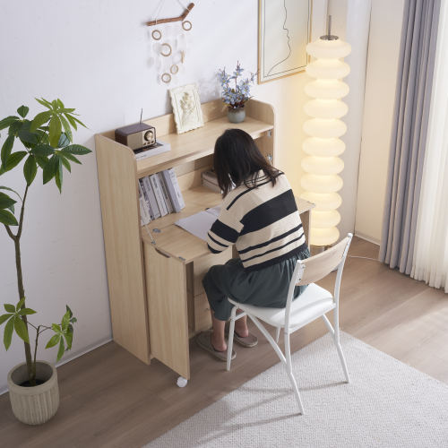 • 2.【折り畳み可能なデザイン】デスクは非常にコンパクトで、幅わずか30cmのスリムデザインです。使わないときはテーブルを折りたたんでコンパクトに収納可能で、部屋の隅に置いて邪魔になりません。