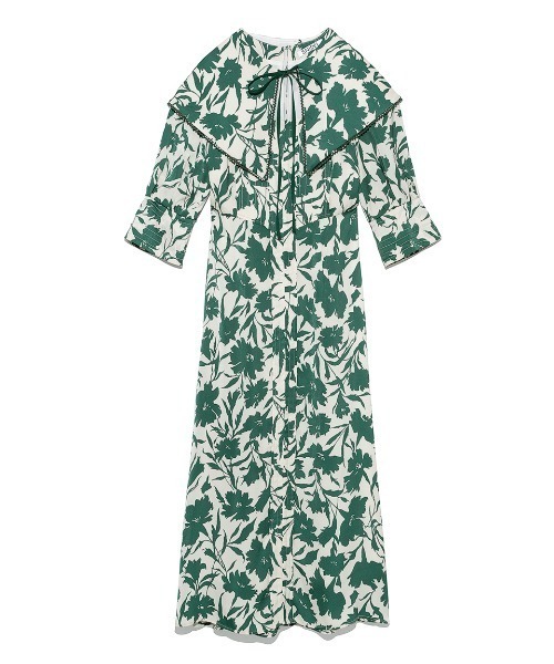 キーワード:ワンピース フレア ロング 花柄 七分袖 五分袖