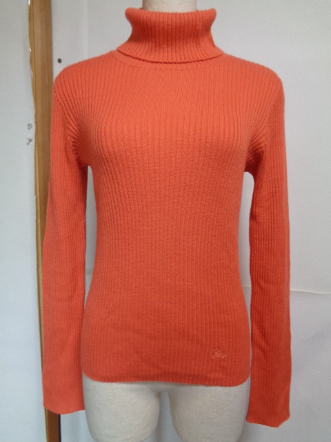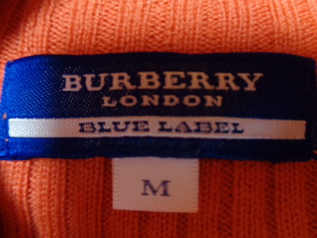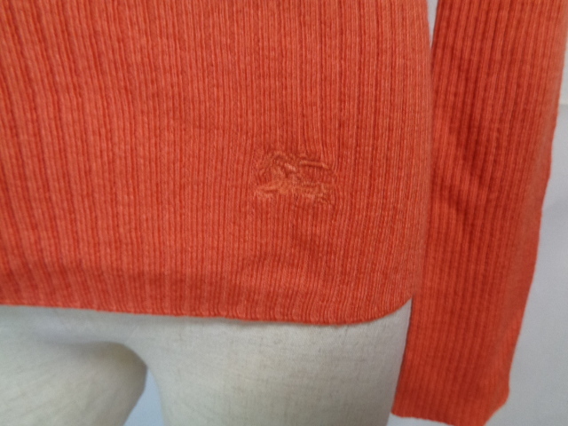 美品★バーバリーブルーレーベル*M*毛100%*リブニット*長袖ニット*タートルニット*色*カラー*オレンジ*タートルリブニット*三陽商会*38
