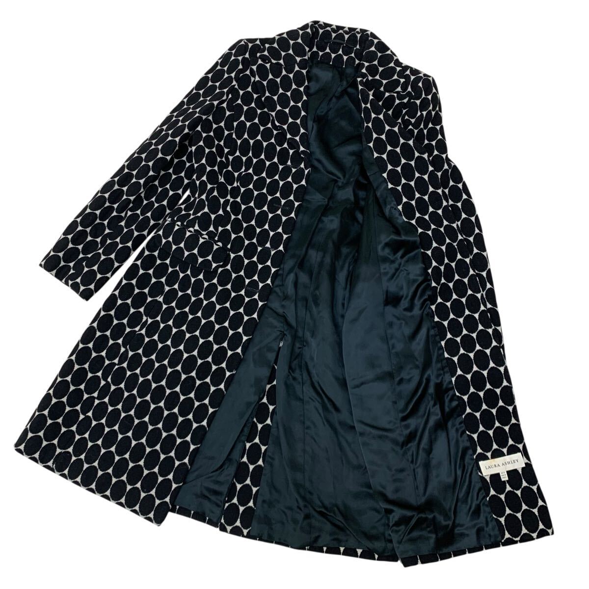 9K336-66 Laura Ashley ローラアシュレイ チェスター コート ロング ジャケット 上着 羽織り ブラック 黒 ドット レディース 女性用