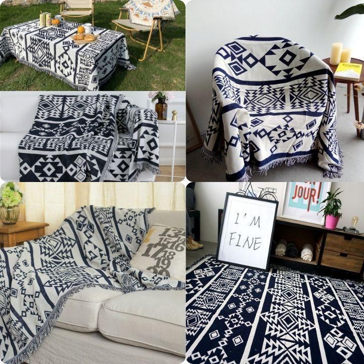 【室内でも大活躍】アウトドア用だけでなく、室内での普段使いにもおすすめです。ソファの上やフロアーマットとしてもお使いただけます。1枚広げるだけでぐっと雰囲気を盛り上げ、寛ぎの空間を彩ります。