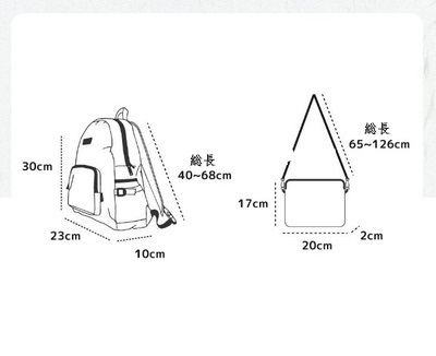 リュックサイズ:約横23x縦30xマチ10cm ショルダー長さ40-68cm