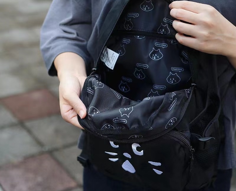 NE-NET ネネット リュックバッグ 2点セット リュックサック+ショルダーバッグ レジャー 刺繍ねこ お出かけバッグ 収納 大容量 niya03