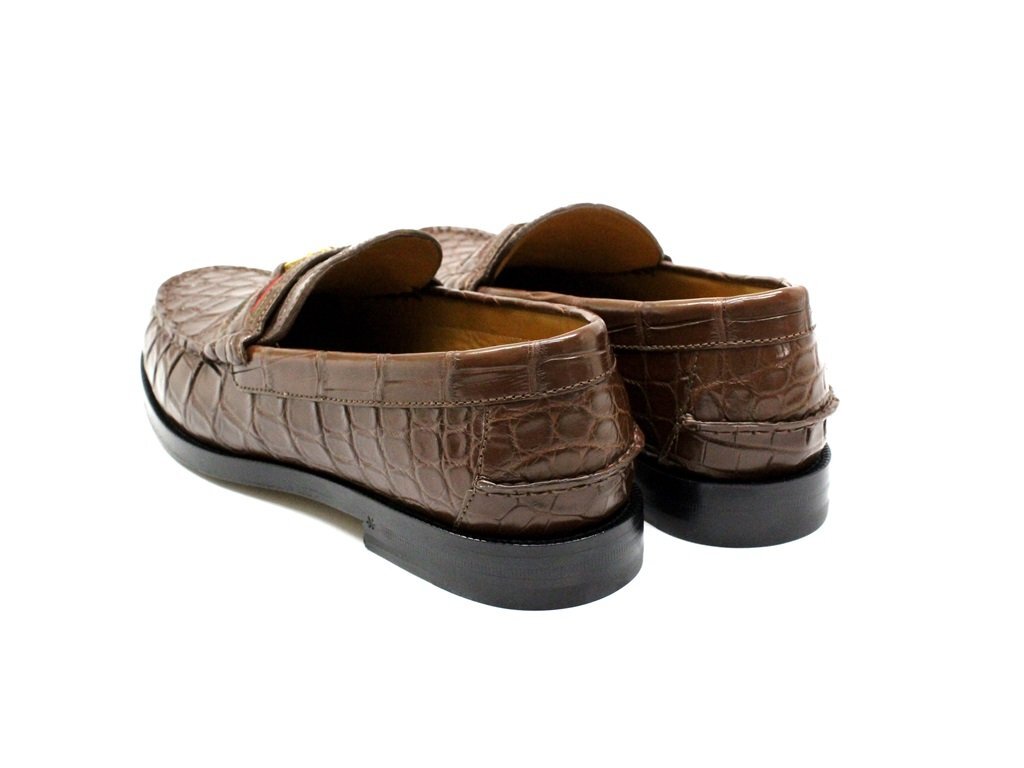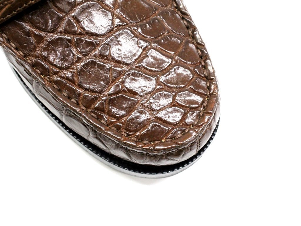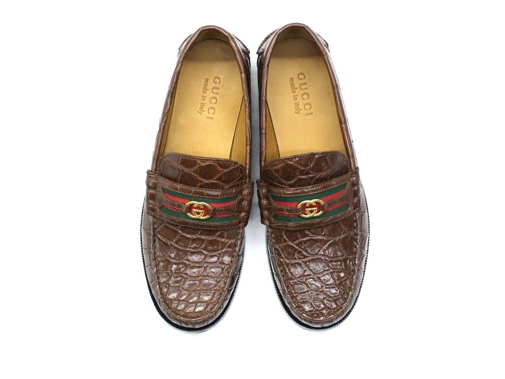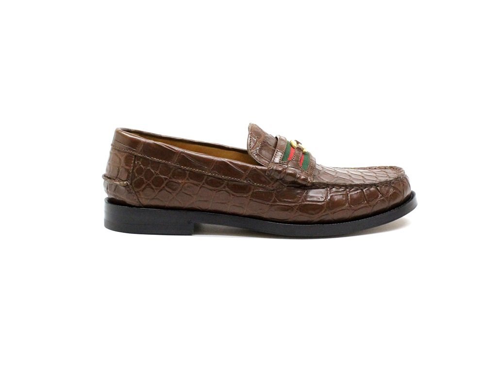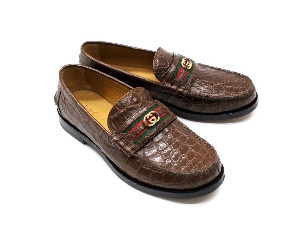 96万新品◆8=27cm◆GUCCIグッチ インターロッキングGGロゴ ホースビット クロコダイルローファーシューズ 茶ブラウン