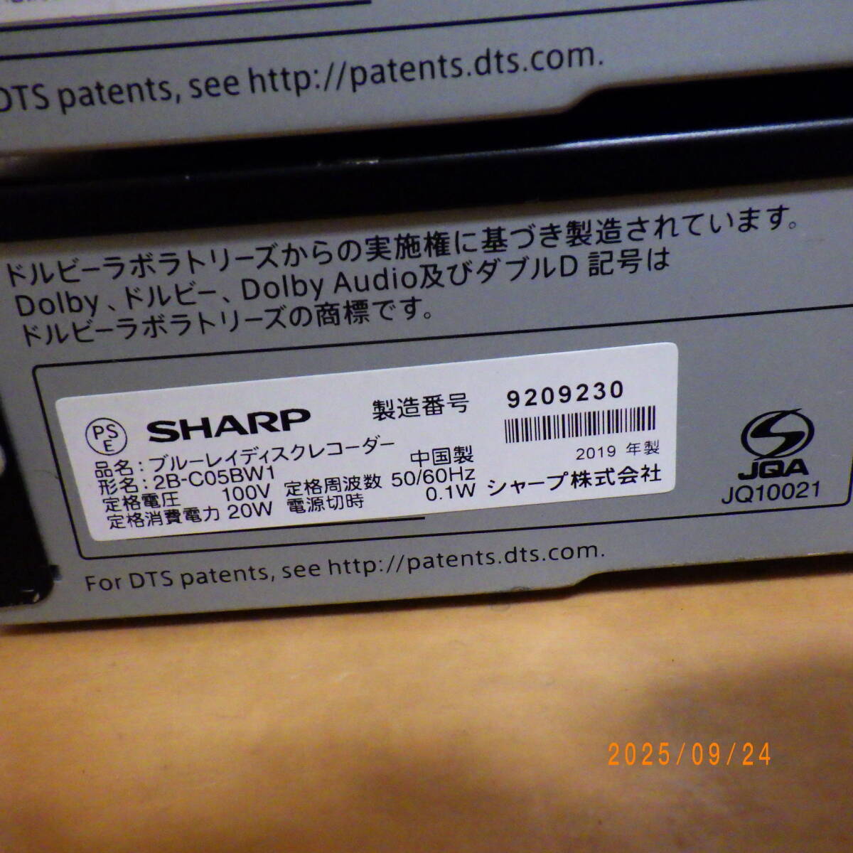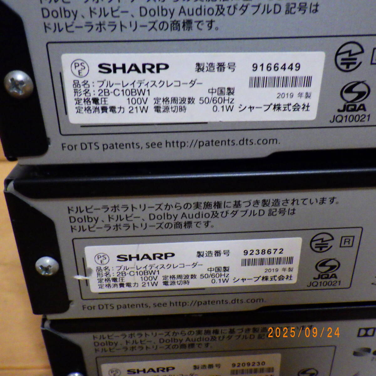 シャープ 2B-C05BW1 ブルーレイレコーダー 3台セット ジャンク品 まとめて 2019年製 通電確認のみ です。