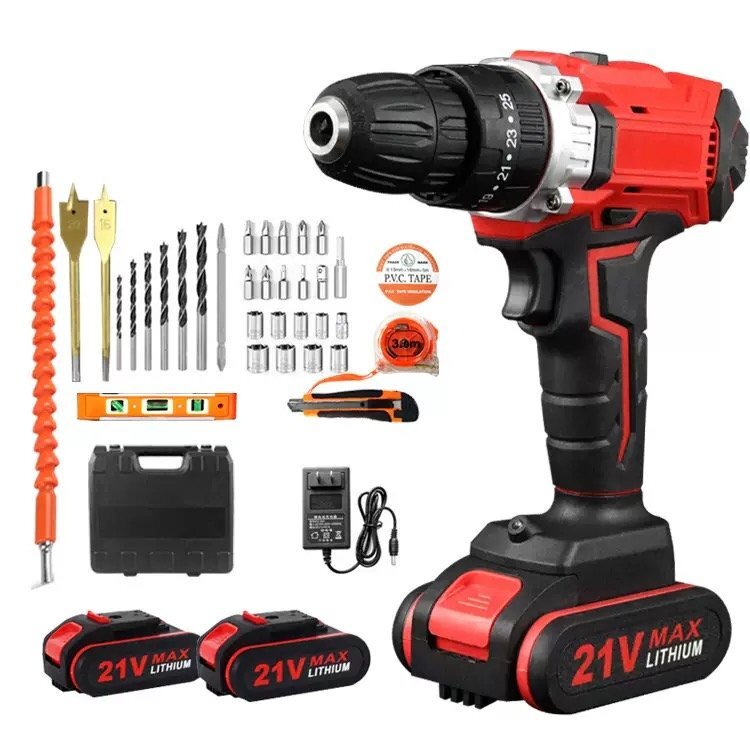 多機能リチウム電池インパクトドリル、充電式ハンドドリルセット、2 本の電池と 1 台の充電器付きで、アクセサリーも含まれていますxhw0030