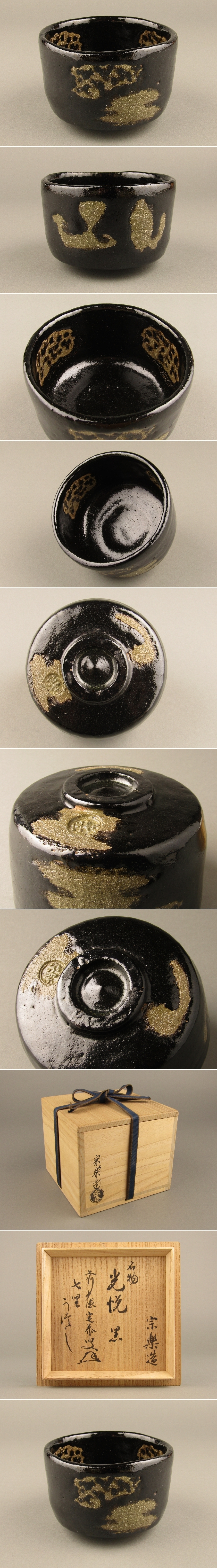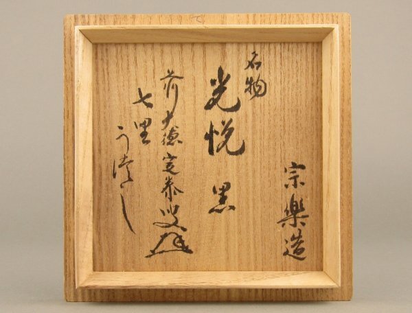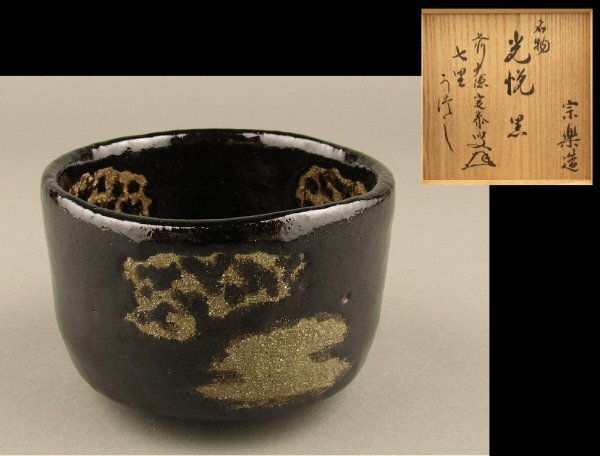 「宗楽」造 名物光悦七里写し 黒茶碗 前大徳寺小堀定泰書付