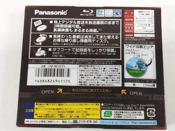 455-A1/未開封 Panasonic パナソニック BD-RE 25GB くり返し録画用 5枚パック