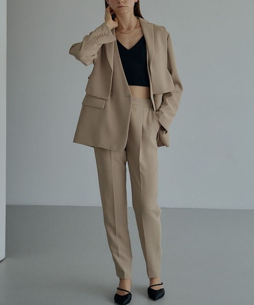 素材:<ジャケット、ベスト> 表地 ポリエステル、93% ポリウレタン、7% 裏地 ポリエステル、100% <パンツ> 表地 ポリエステル、93% ポリウレタン、7% リブ地 コットン、92% ポリウレタン、8% 裏地 ポリエステル100%