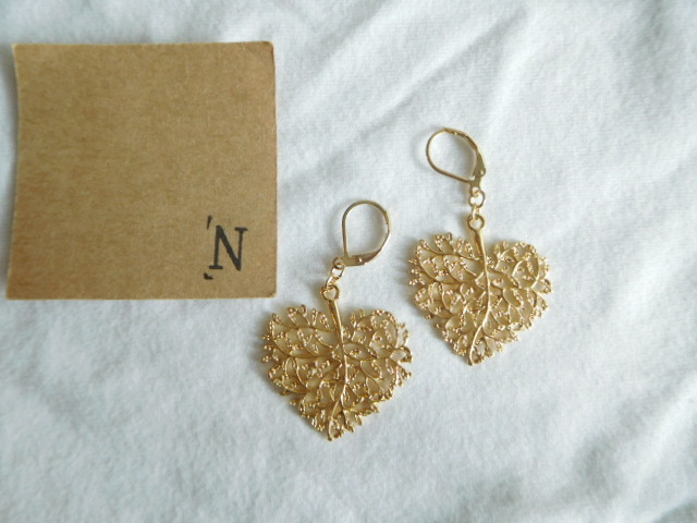 ハート型のリーフピアスです。繊細なデザインで素敵です。