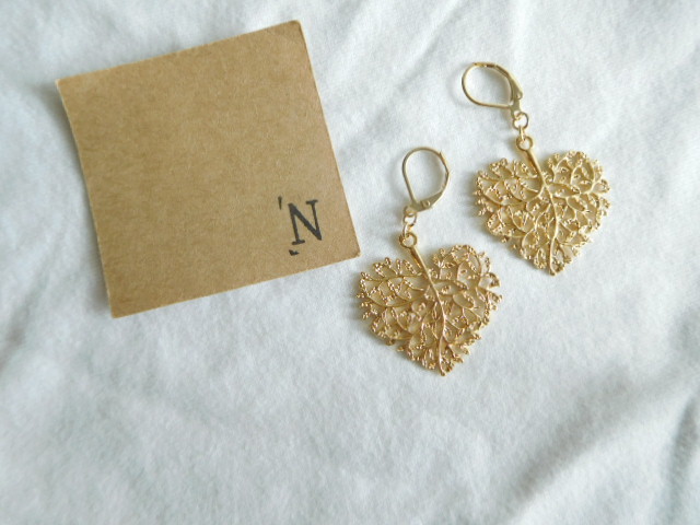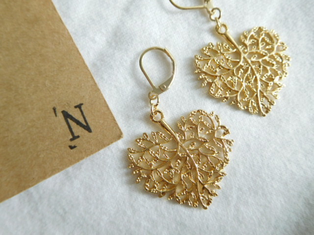 ゴールドハートリーフピアス イヤリング ハンドメイドピアス