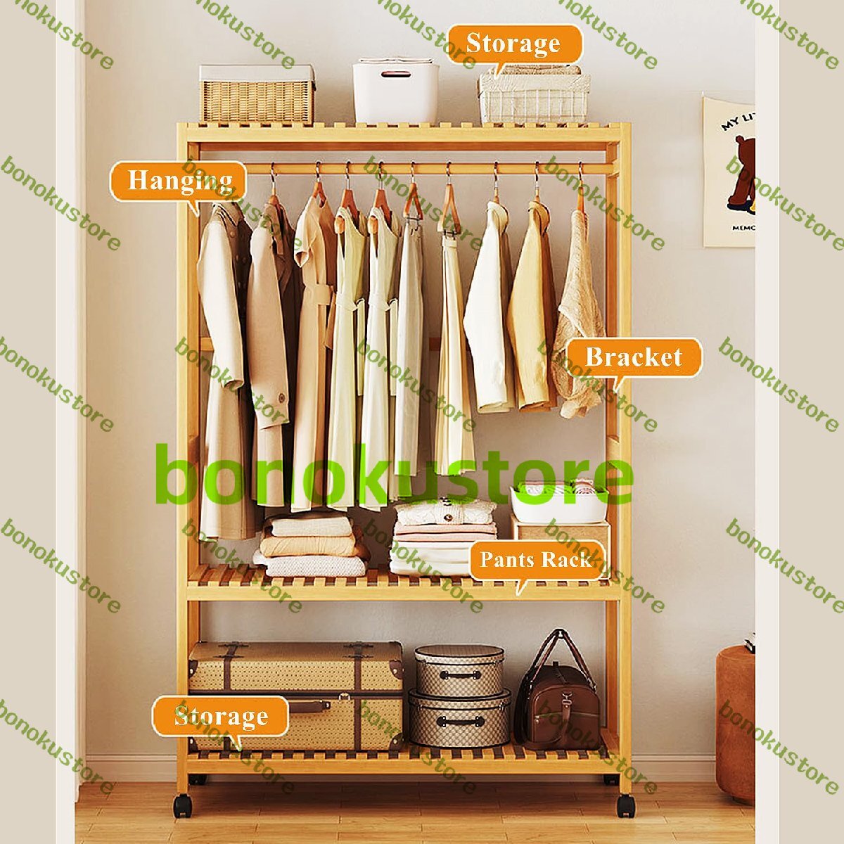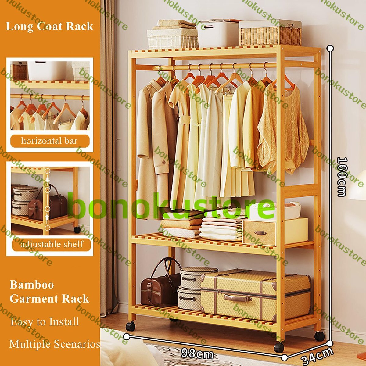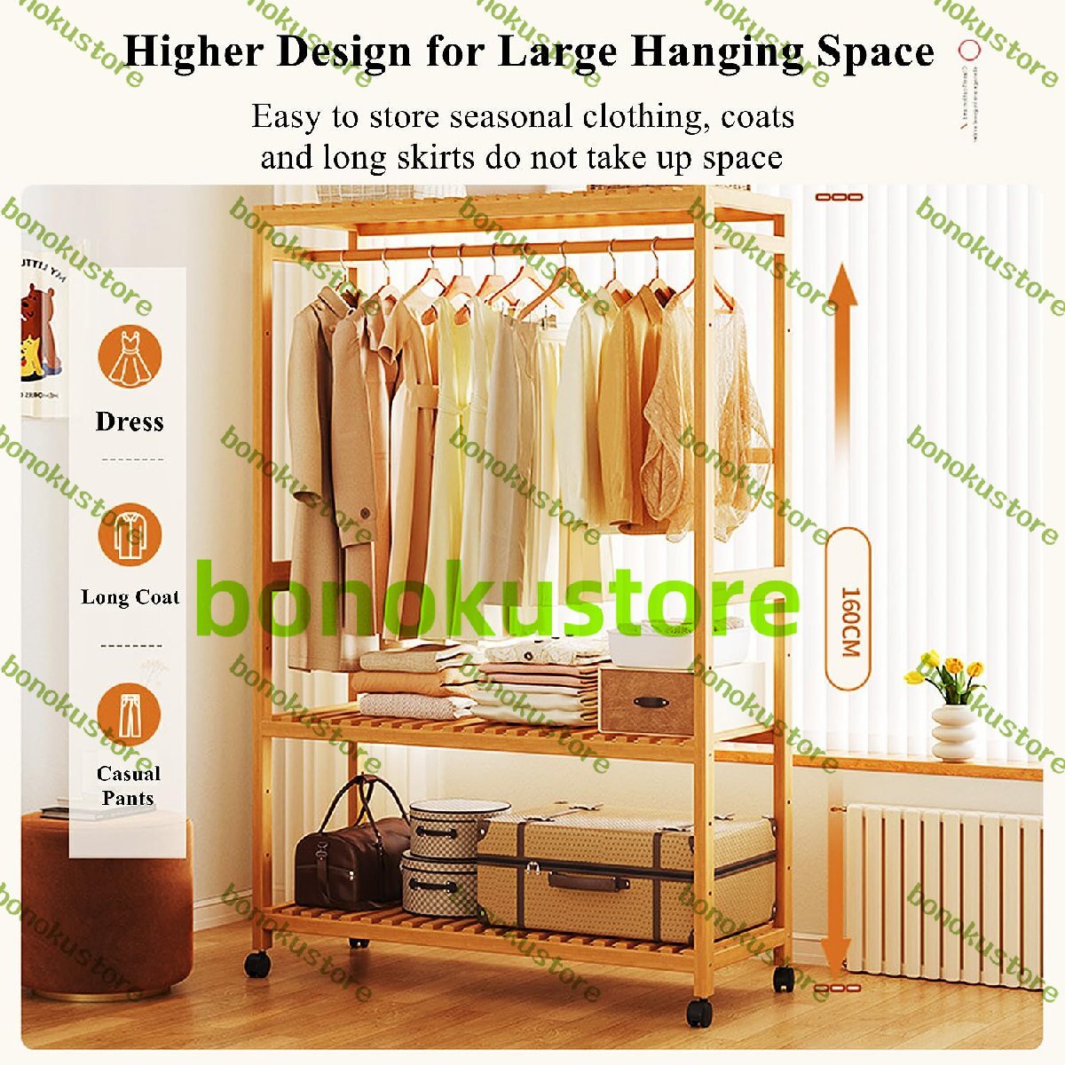 無垢材の衣類ラック:この高級な竹製の可動式衣類ラックは、家庭生活に彩りを添えます。寝室、クローク、リビングルームのどこに置いても、完璧に調和し、あなたの生活のセンスを表現できます