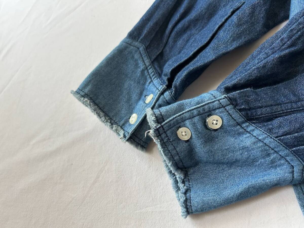 IENA イエナ SIMPLICITEの、ゆったりとしたシルエットに切り替えになった可愛いデニムシャツです。 色 インディゴブルー×ダンガリーブルー フロントボタン開閉 両胸にポケット付き ドロップショルダー サイズ表示 F 実寸 着丈77cm 胸囲60cm 肩幅50cm 袖丈49cmくらい (平置きにて計測しております。) 素材 綿100% *画像でコーディネートした他アイテムは付属致しません。 中古品とお考え下さい。 特に目立つ汚れやキズははありません。 また、写真画像はモニター環境や撮影状況などに応じて、実際の商品とお色と少し異なる場合があります。よろしくお願いいたします。 ダメージの見落としがある場合はご容赦ください。 他、気になる点はご質問下さい。 なお、落札後のキャンセルはできません。 発送後はノーリターン、ノークレームでお願いします。 オークション終了後、2日以内にご連絡が取れる方のみご入札下さい。 万が一連絡が遅くなってしまう場合は、オークション終了前に、必ず質問欄より お問い合わせ下さい。 | ||||||||