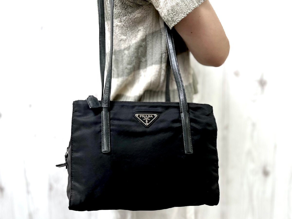 | 美品 PRADA プラダ テスート ショルダーバッグ バッグ ナイロン×レザー 黒 89903 | ||