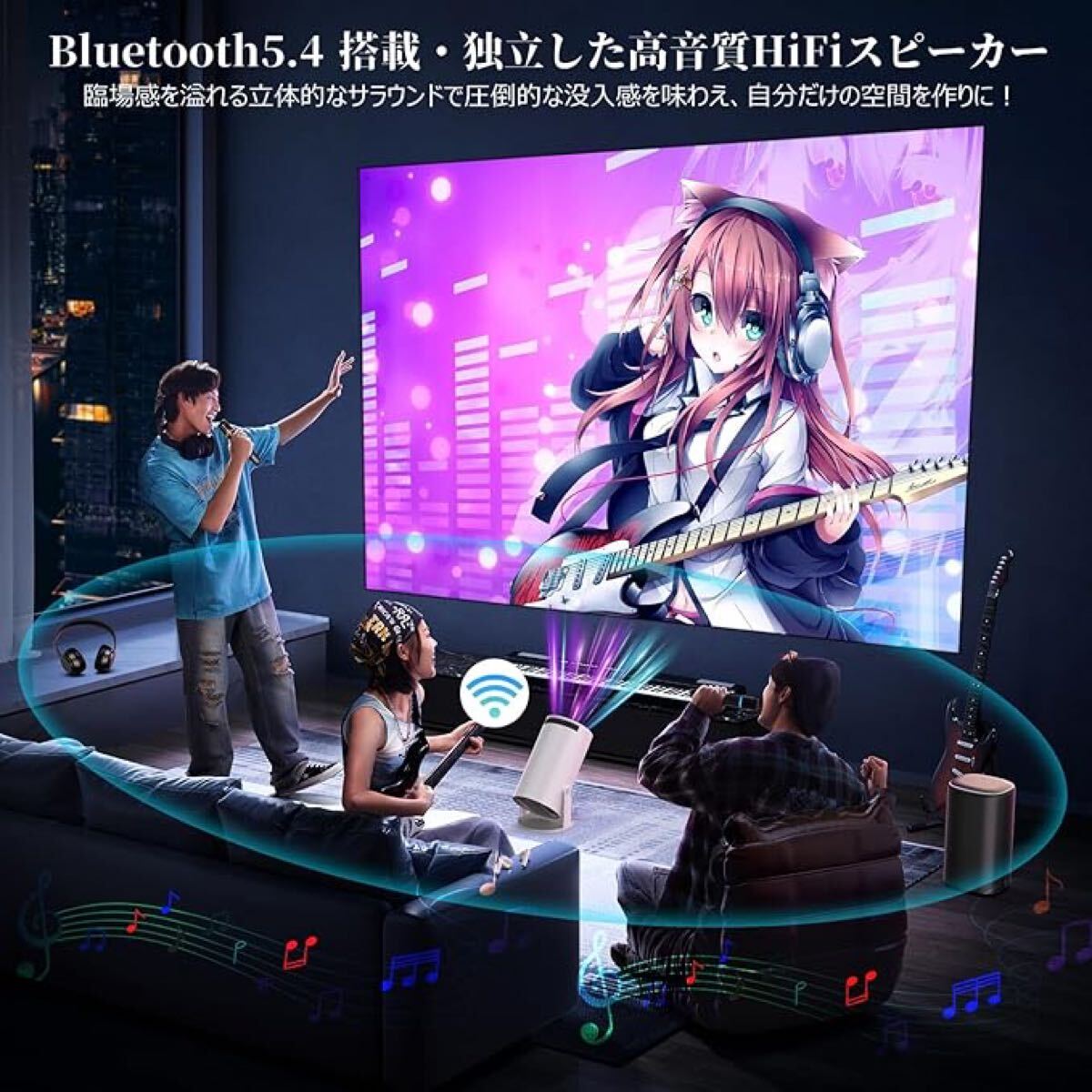 この家庭用プロジェクターは、高精度微小レンズで、明るさが18,000 ルーメンに向上し、1920*1080ネイティブ高解像度でリアル1080PフルHD対応可能で、NTSC 色域効果の 99% 以上を復元し、最大限によりリアルな画像やビデオを映し出します。4Kに対応な高画質技術を搭載し、最大 12,000:1 の高コントラスト比、スクリーンなしでも、白い壁に投影するだけで自宅で3D映画を実現、臨場感あふれるホームシアター体験が楽しめます。さらに、目に優しい拡散光イメージングとアンチブルーライト技術により、直射光よりも柔らかい光源で、子供やお年寄りでもご安心に好きなアニメやテレビ番組などを楽しみください。※鮮明な画像を確保するために、本体のフォーカスリングを回転させて投影距離と画面サイズを調整してください。