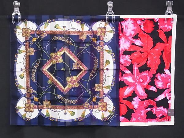 ■新品同様■ CELINE セリーヌ 花柄 総柄 ハンカチ ハンカチーフ 2点セット DI0981