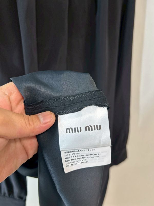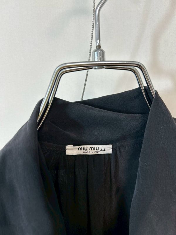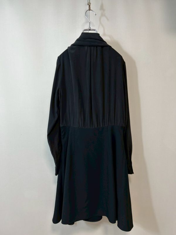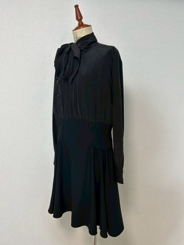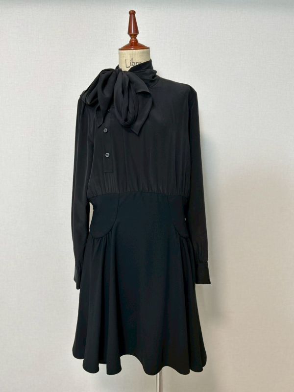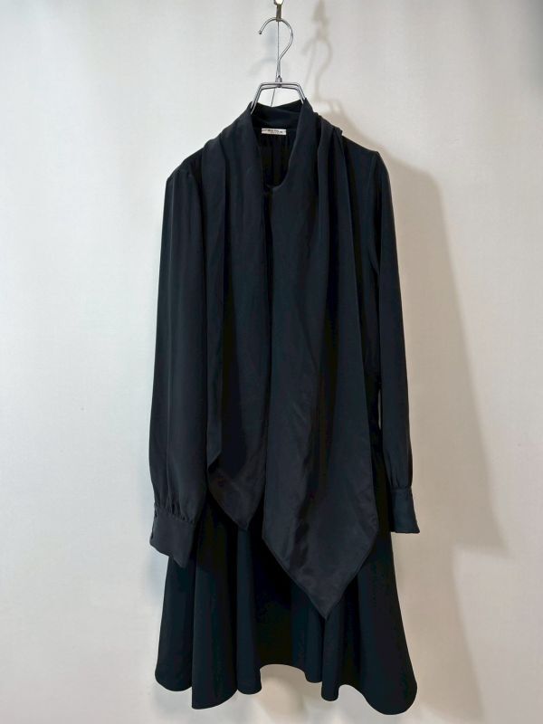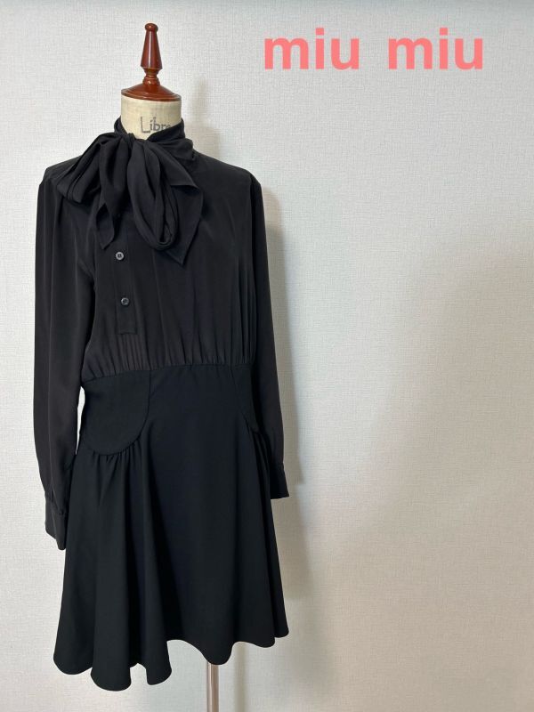 Y0102★11 高級 MIU MIU ミュウミュウ リボンタイ ロング ひざ丈 ワンピース ドレス ブラック size44 JPタグ