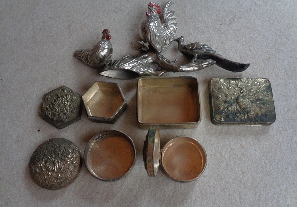 【本物品】金属製の小物入れと置き物5点  古蔵より買入