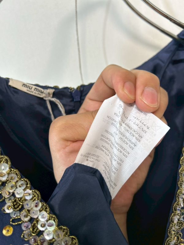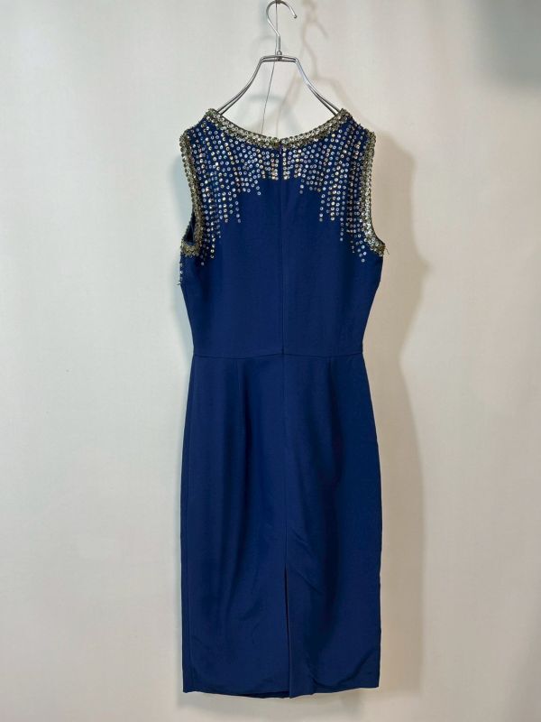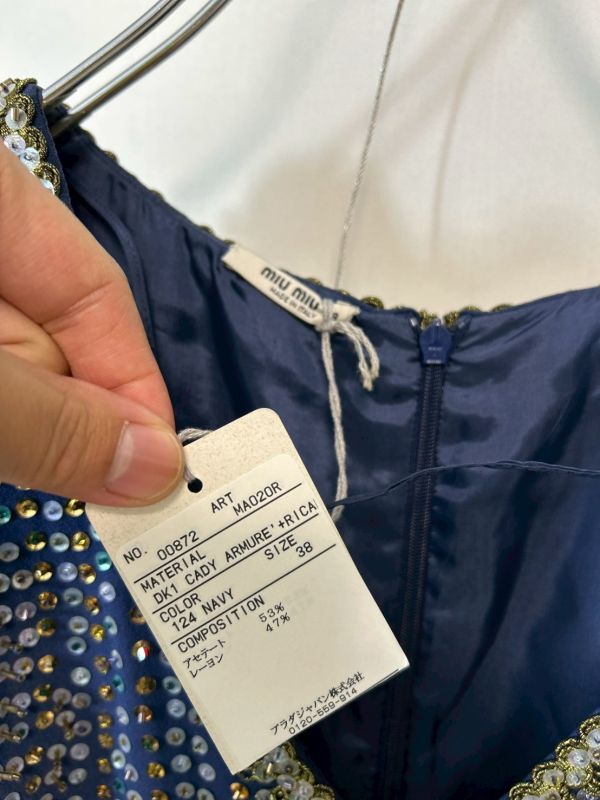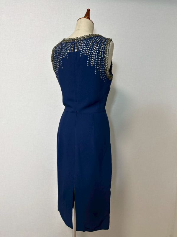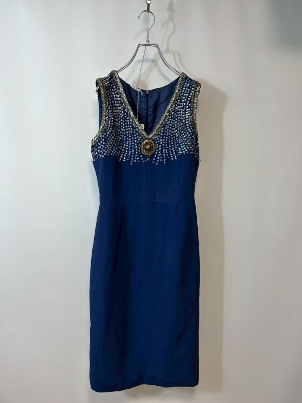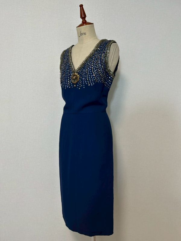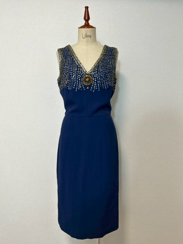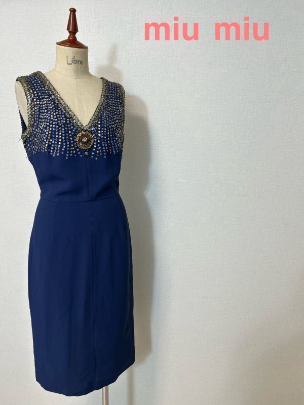 Y0103★12 新品未使用タグ付き MIU MIU ミュウミュウ ビジュー ラインストーン タイト ロング ひざ丈 ワンピース ドレス JPタグ