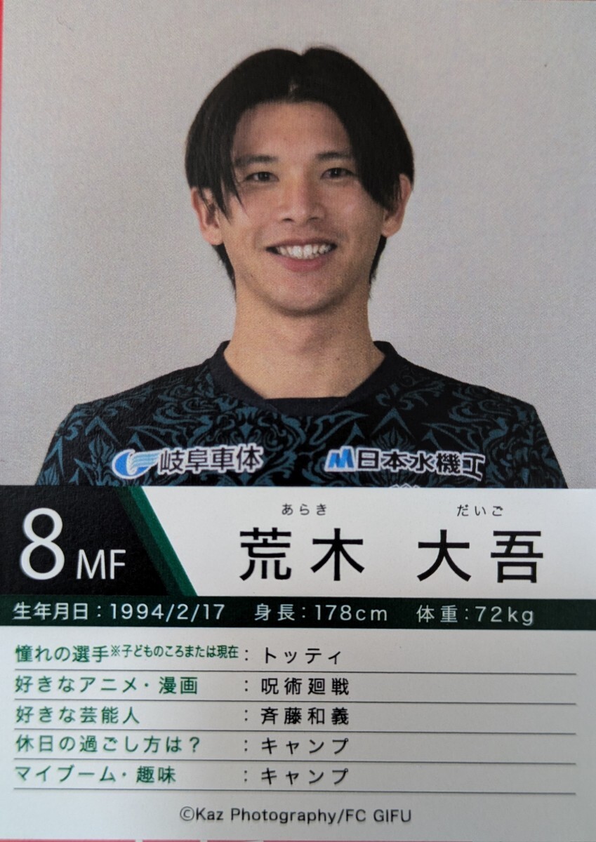 FC岐阜 荒木大吾 オフィシャルカード2025