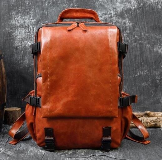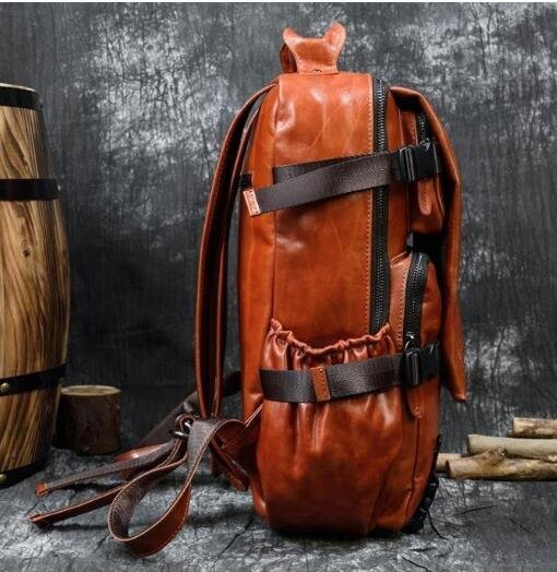 新品☆イギリス風 大容量 レトロ リュックサック 通学用 登山旅行 レザーバッグ 本革 牛革バックパック スクールバッグ▲ブラウン
