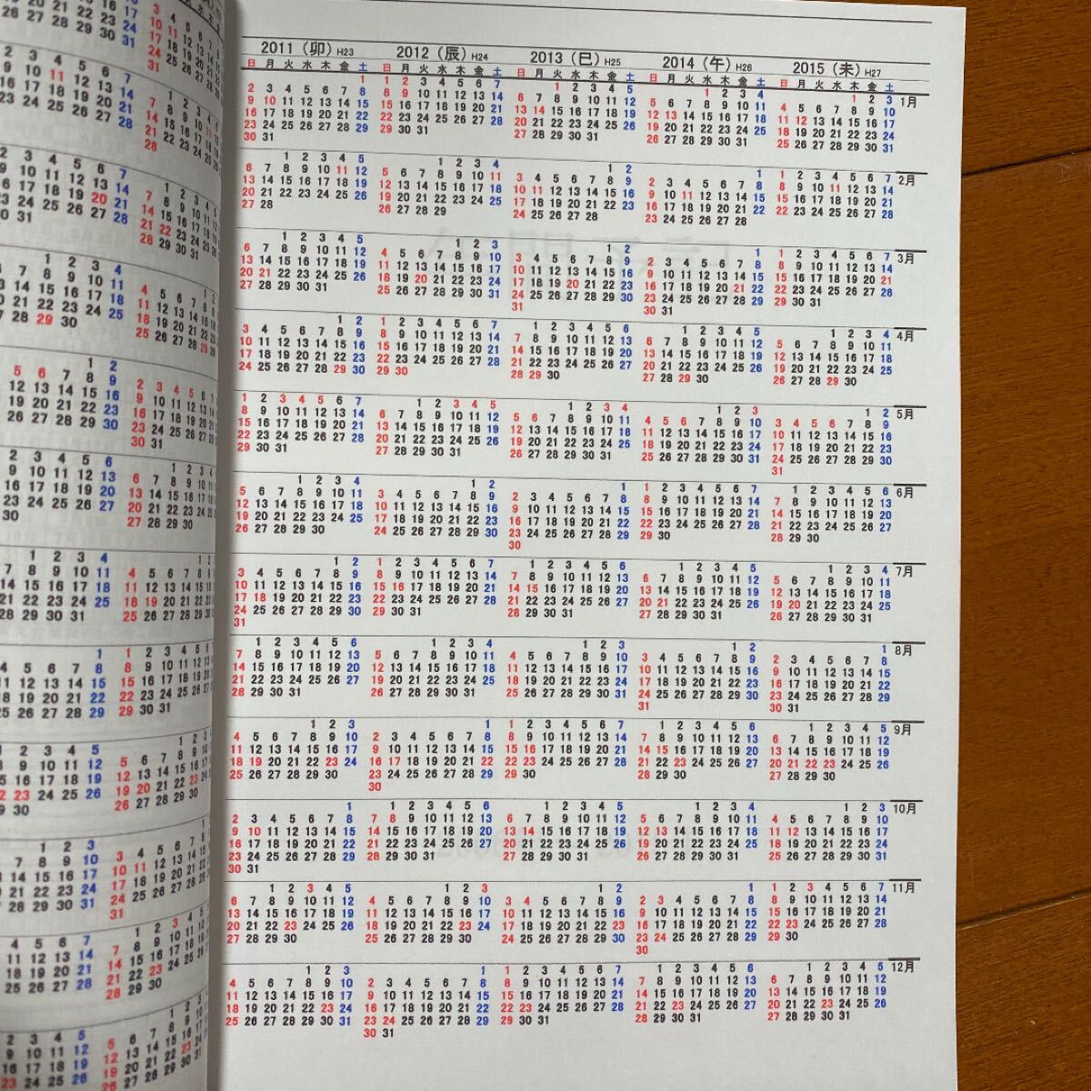 年(日曜日・祝日(赤)土曜日(青)平日(黒))