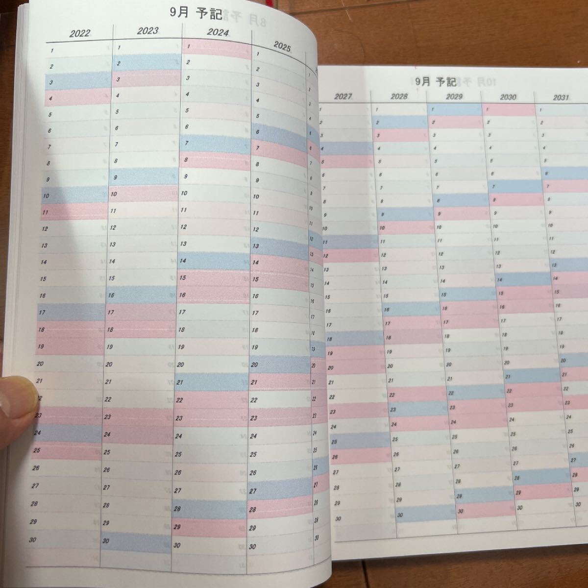 1ページ ヨコに2日 タテに10年(2×10ブロックで構成)