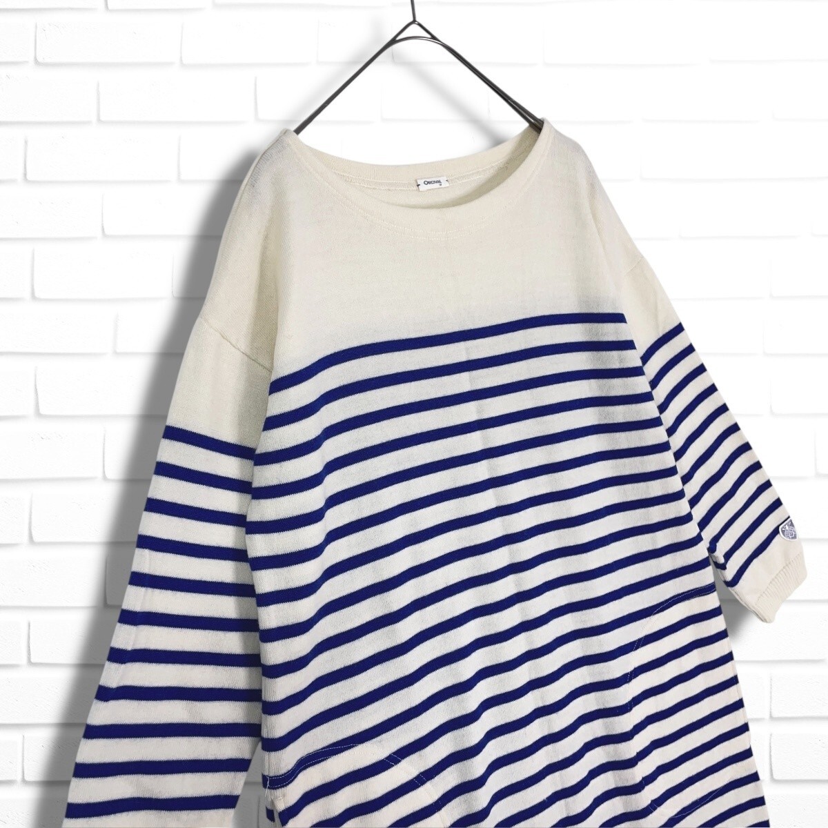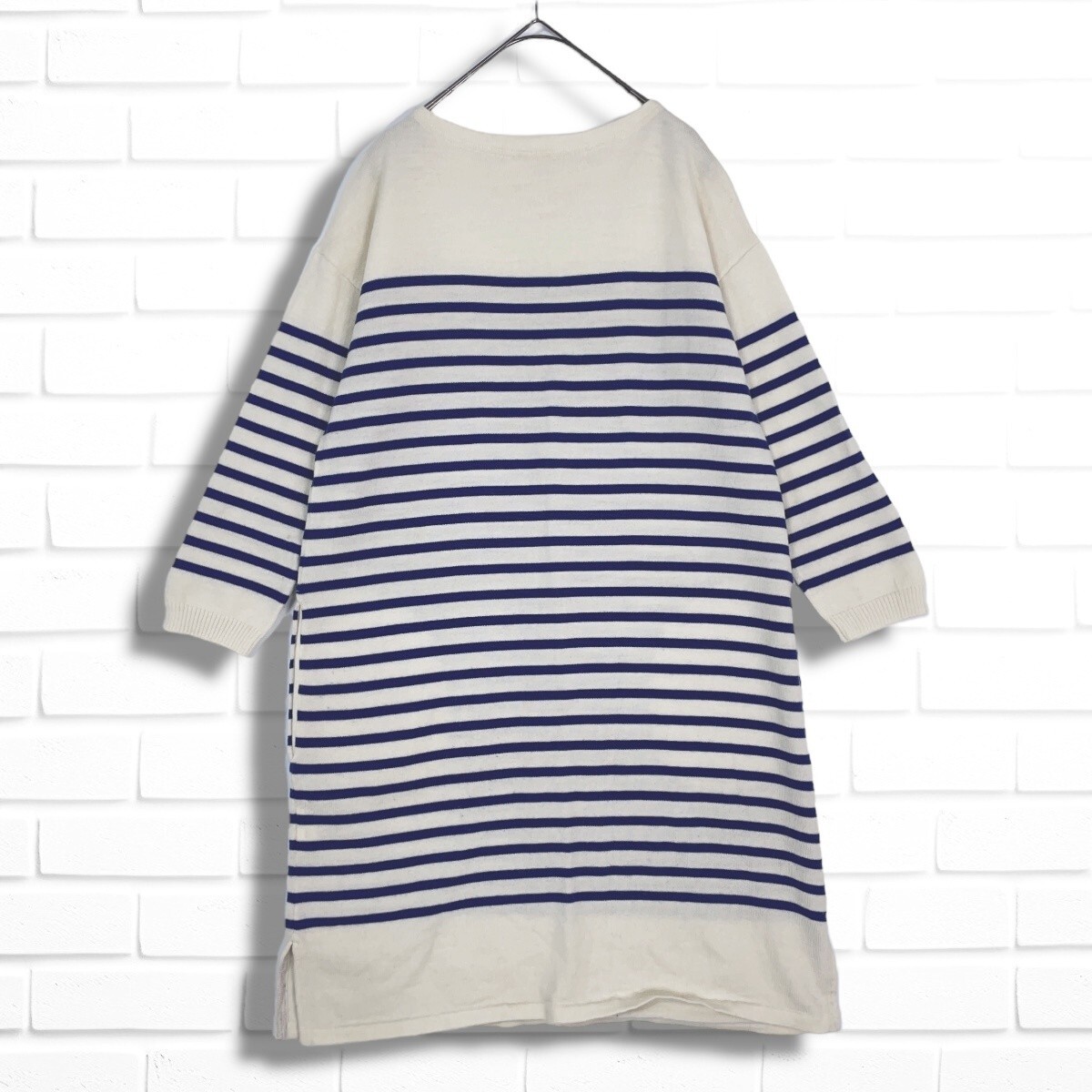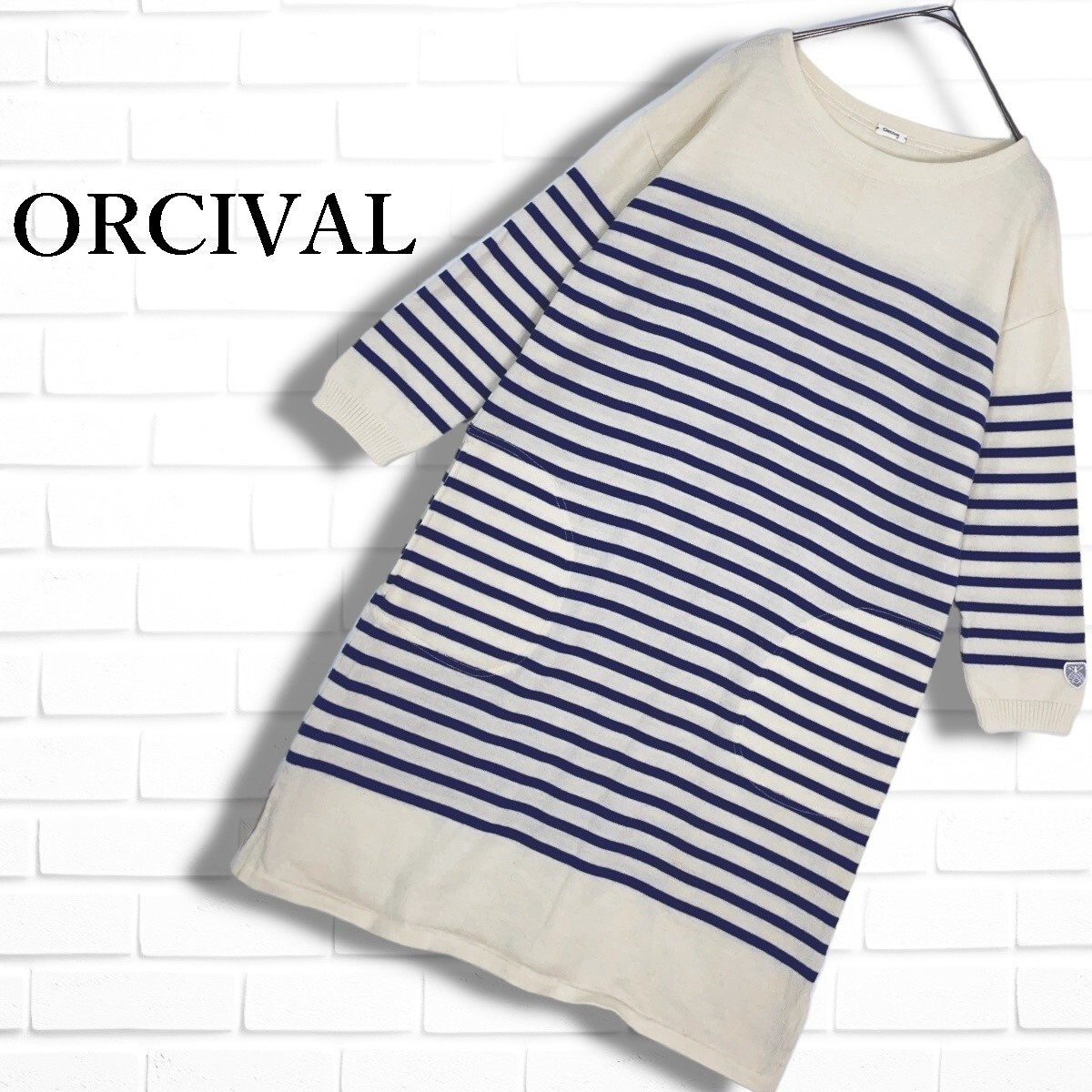 ◆良品◆ ORCIVAL オーシバル ウール 100% ニット ボーダー 長袖 ワンピース 白 × 青 ホワイト レディース 14 ◆送料無料◆ 0065J◇
