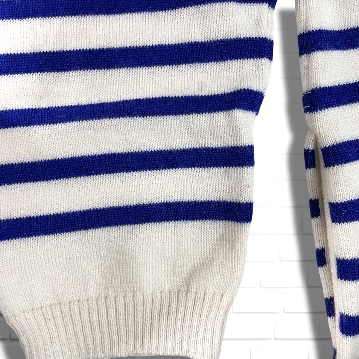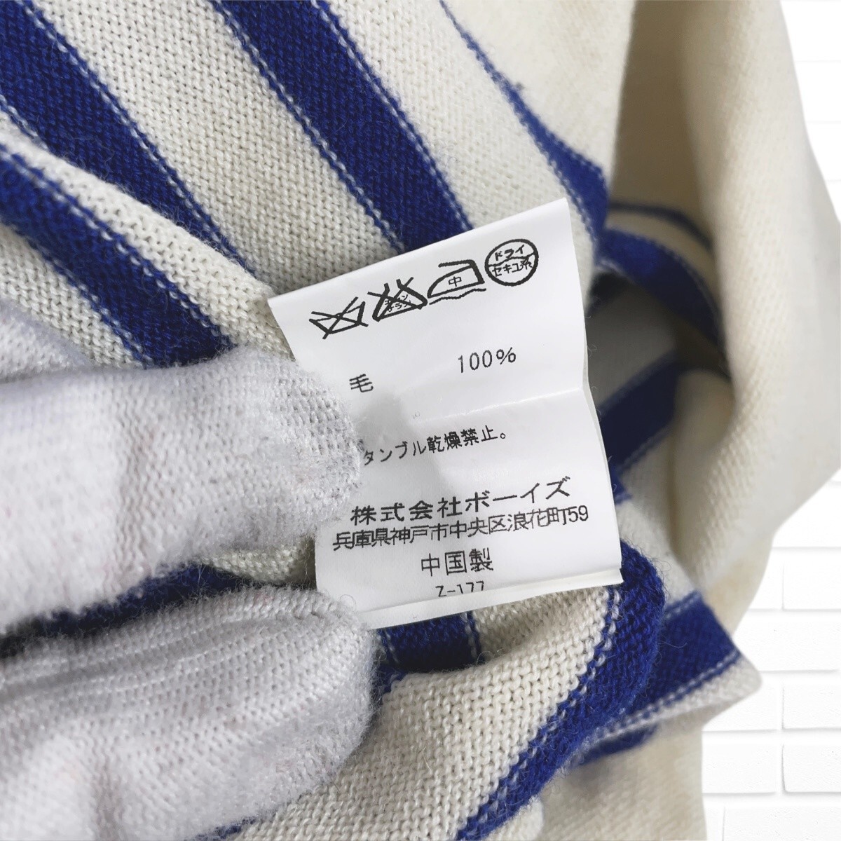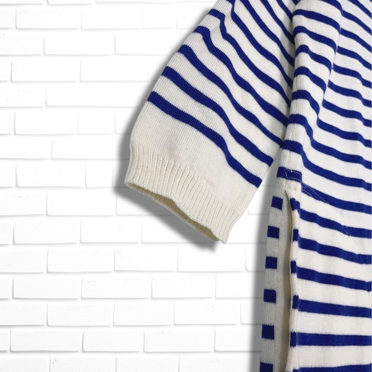 ◆良品◆ ORCIVAL オーシバル ウール 100% ニット ボーダー 長袖 ワンピース 白 × 青 ホワイト レディース 14 ◆送料無料◆ 0065J◇