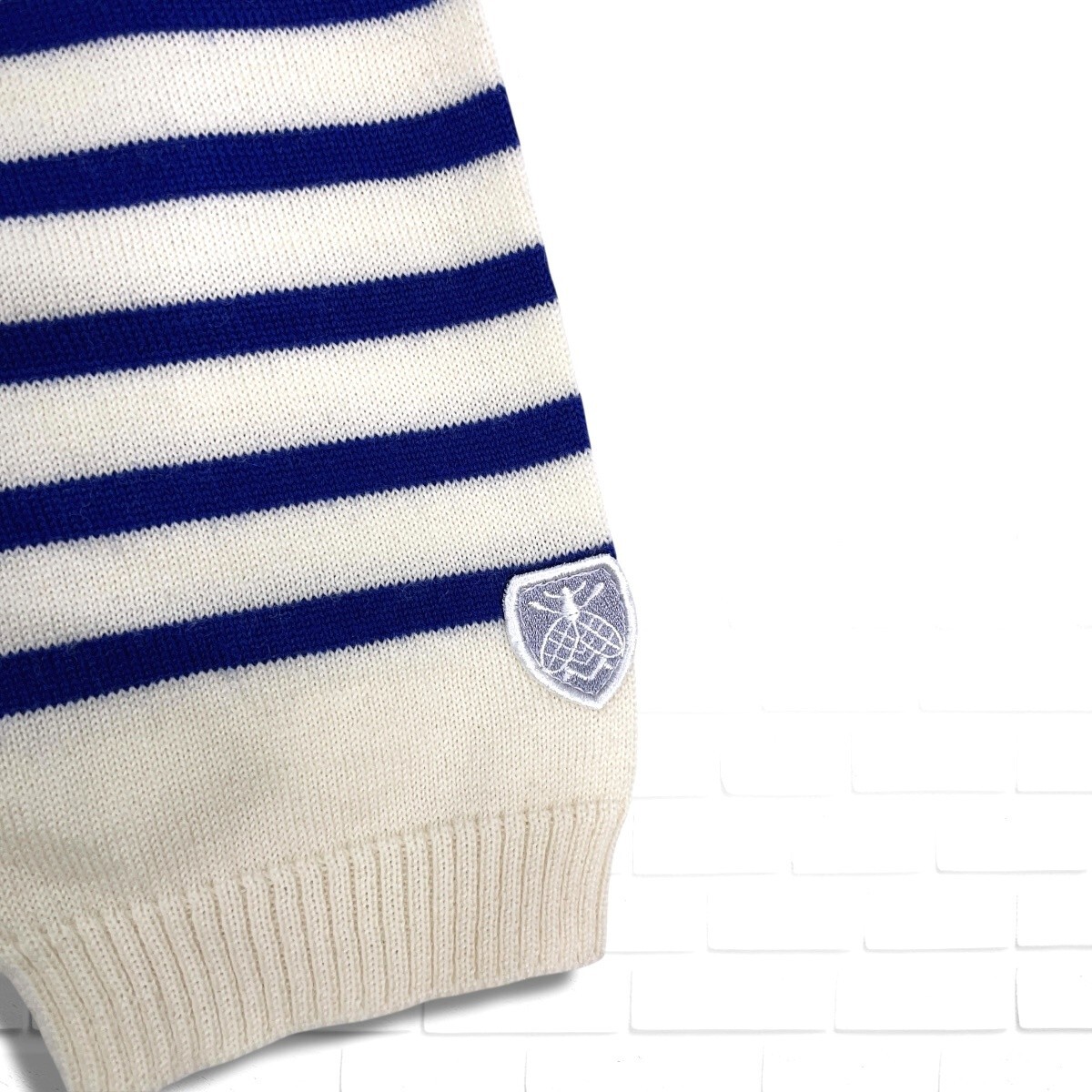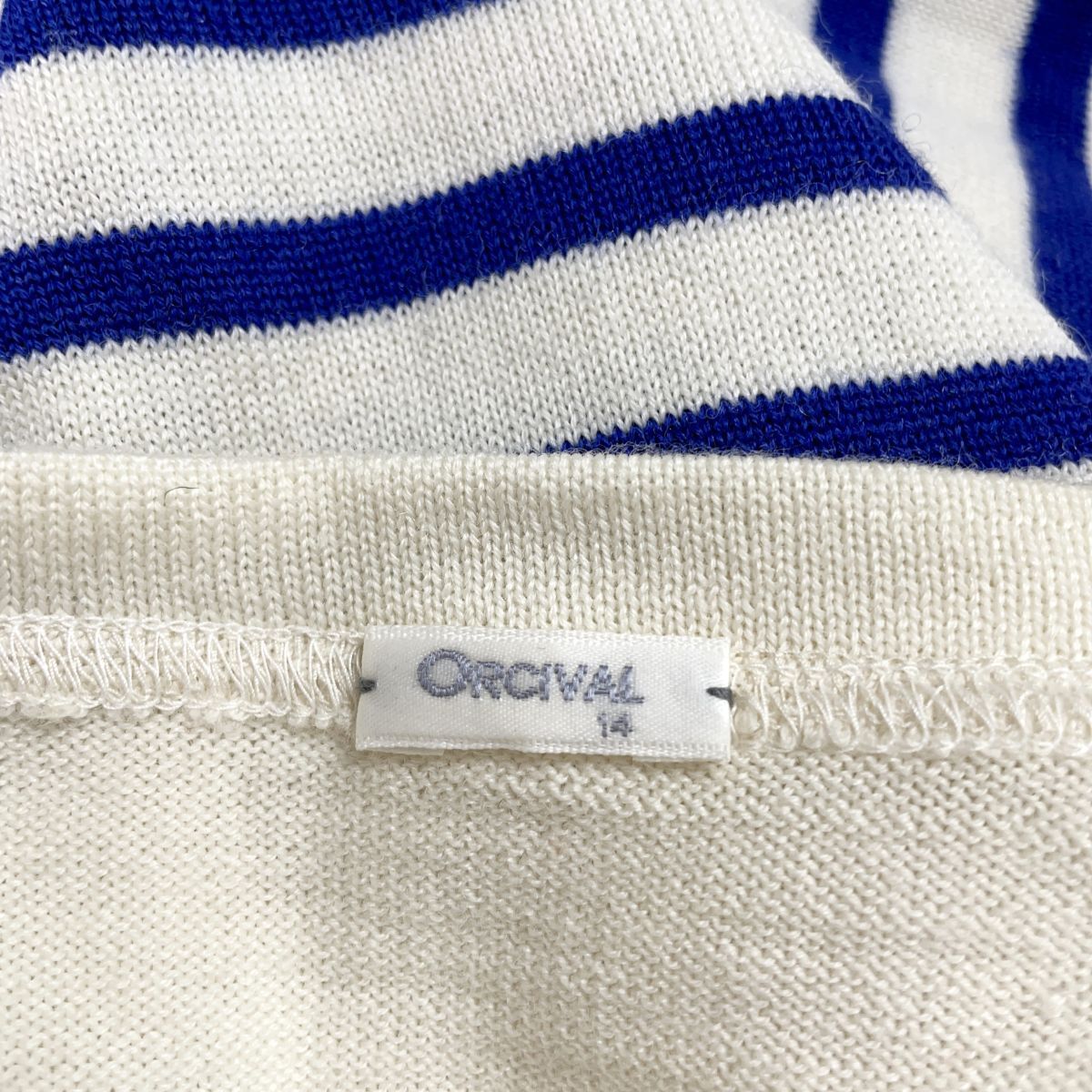 ◆良品◆ ORCIVAL オーシバル ウール 100% ニット ボーダー 長袖 ワンピース 白 × 青 ホワイト レディース 14 ◆送料無料◆ 0065J◇
