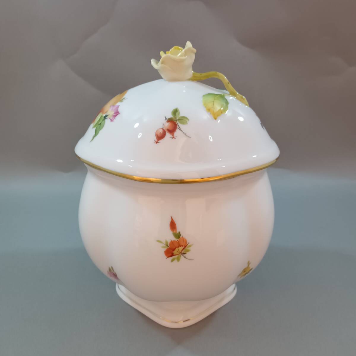 ◆HEREND ヘレンド フルーツコンポジション 蓋付きボックス 小物入れ 薔薇 バラ◆OKAS06016