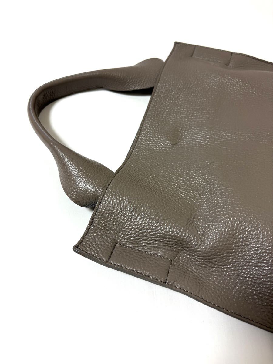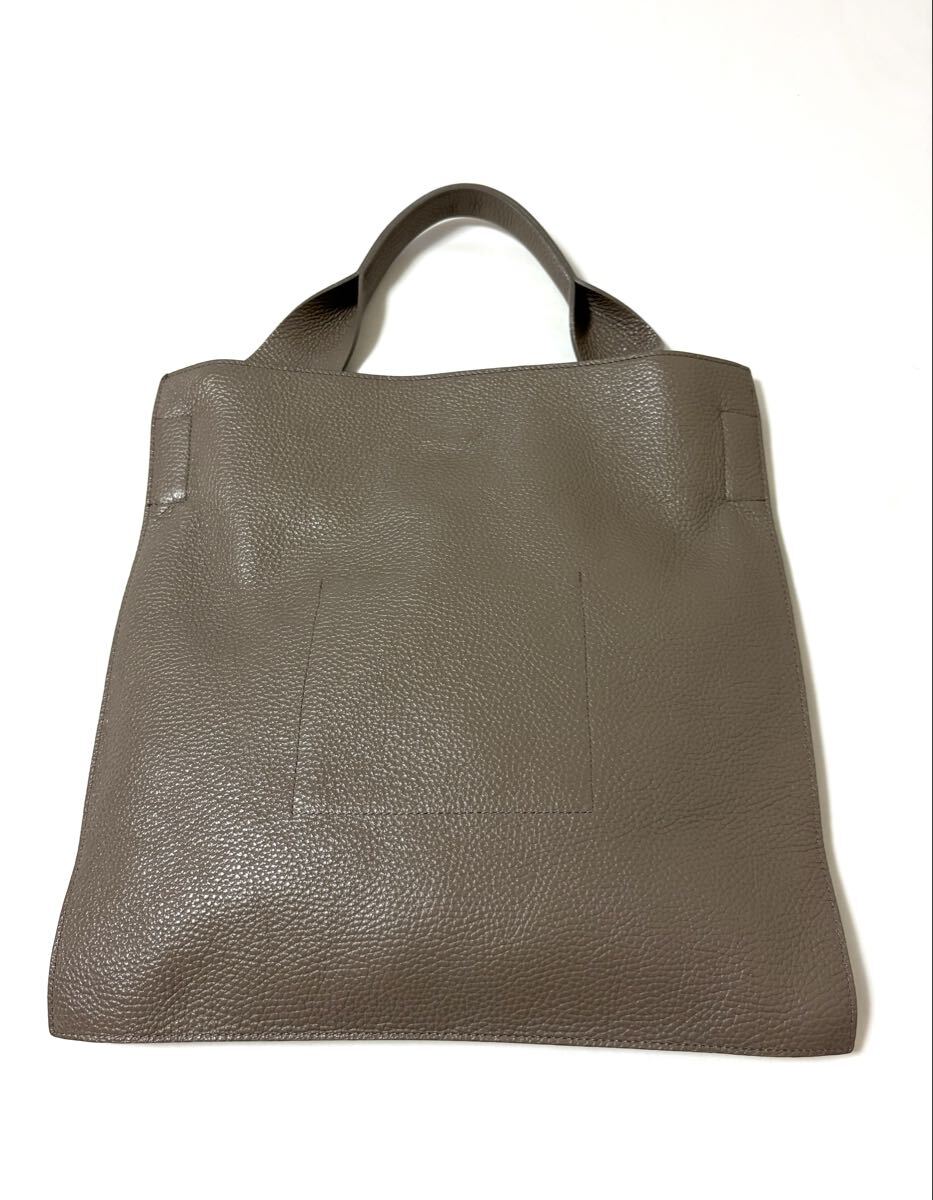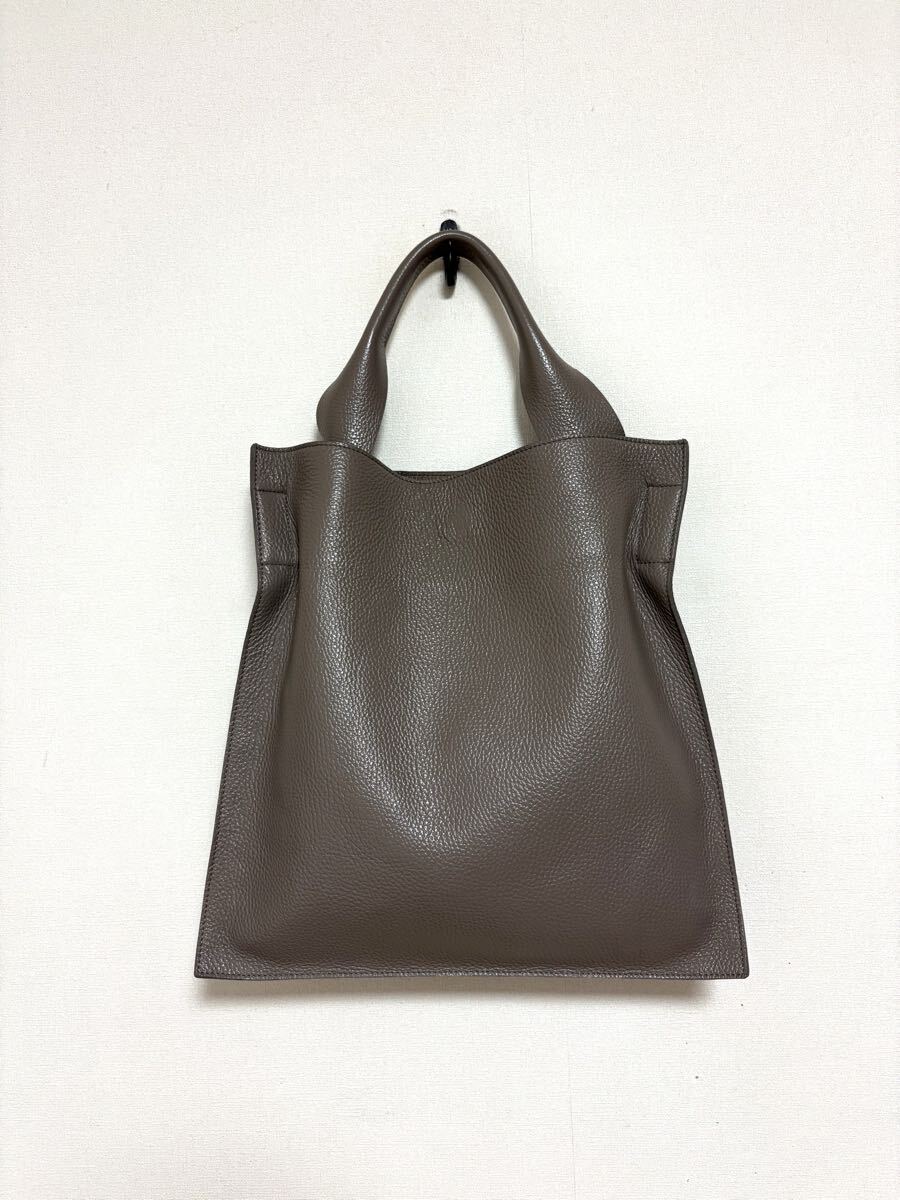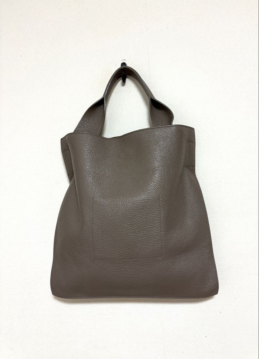 「トゥモローランド」にて購入した「arron アローン」のトートバッグです。サイズ・・・約35cm×約35cm。素材・・・レザー。カラー・・・モカ。定価・・・30800円。イタリア製。シボ感のある上質なイタリアンレザーを使用しています。存在感のあるハンドルのデザインが素敵です。数年前に購入し、何度か使用しました。目立つダメージはないですが、あくまでユーズドですので、神経質な方はご遠慮ください。よろしくお願いいたします。