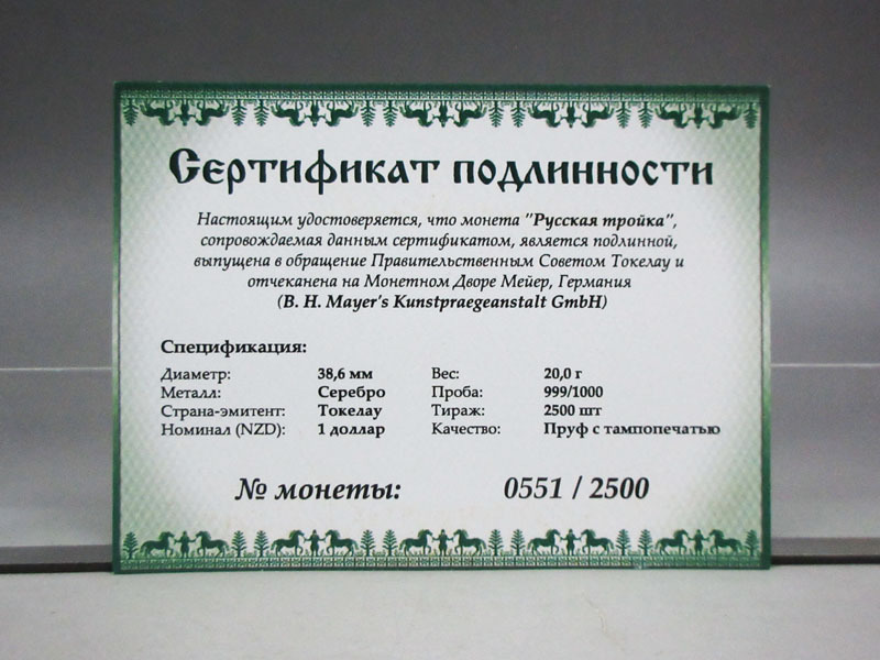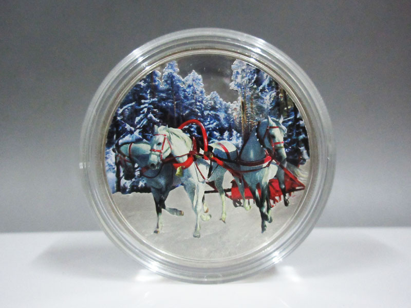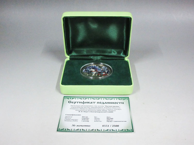 ☆B24 【トケラウ銀貨】 1ドル銀貨 ケース付 2014年 Russian Troika SILVER DOLLAR FINE SILVER プルーフ トケラウ諸島 外国銀貨 コイン