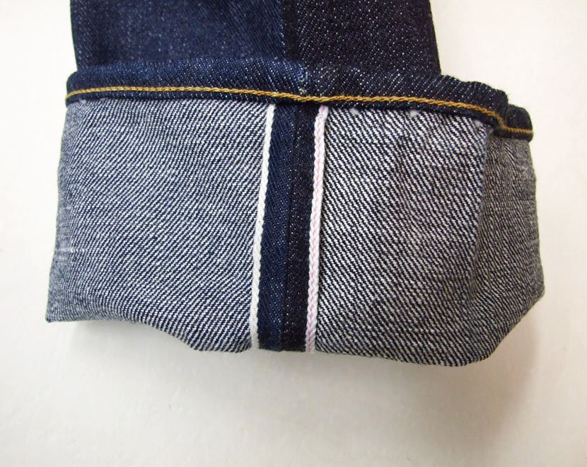 このジーンズは3種類の異なる織り方のデニムを組み合わせて作られています