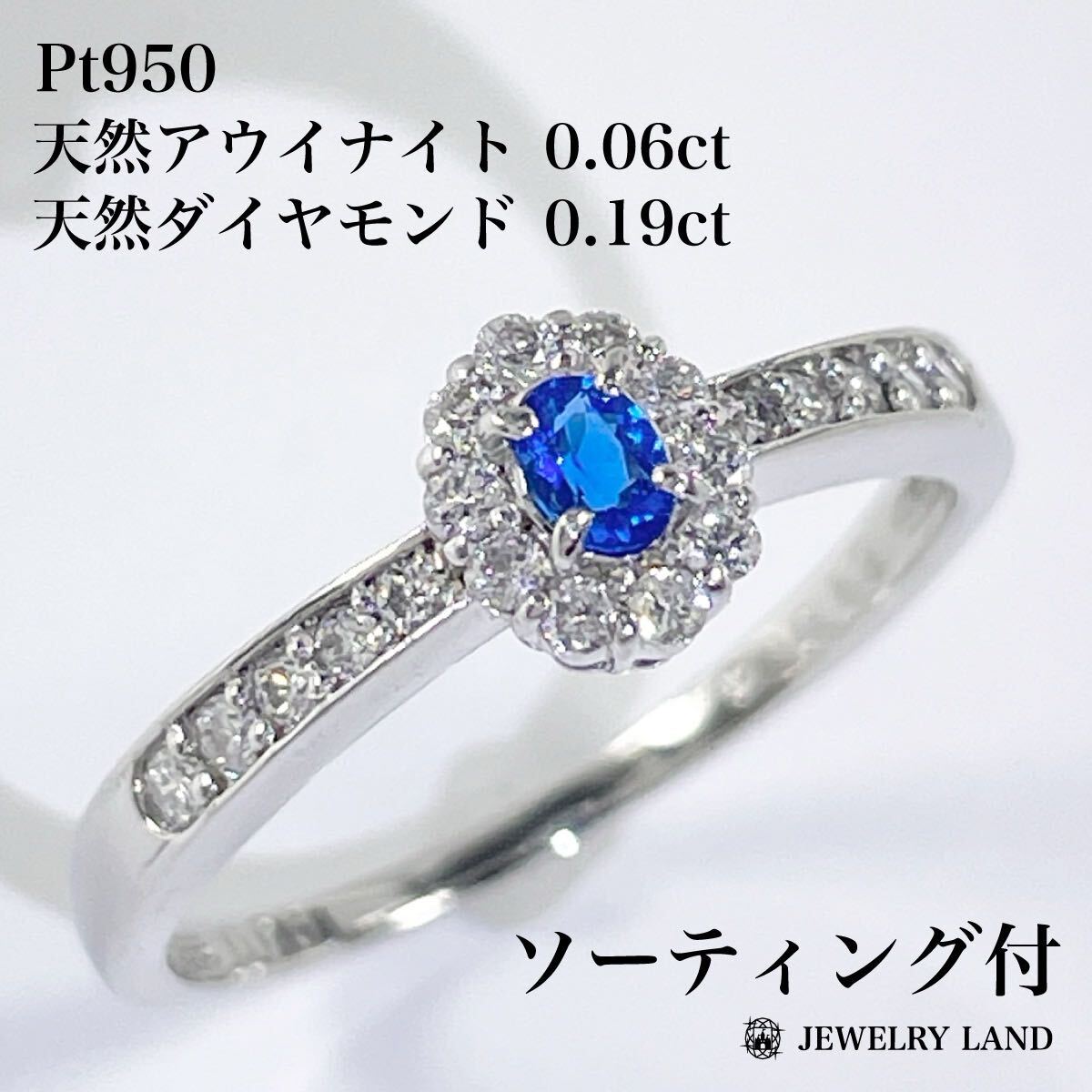 Pt950 天然アウイナイト 0.06ct ダイヤモンド 0.19ct リング