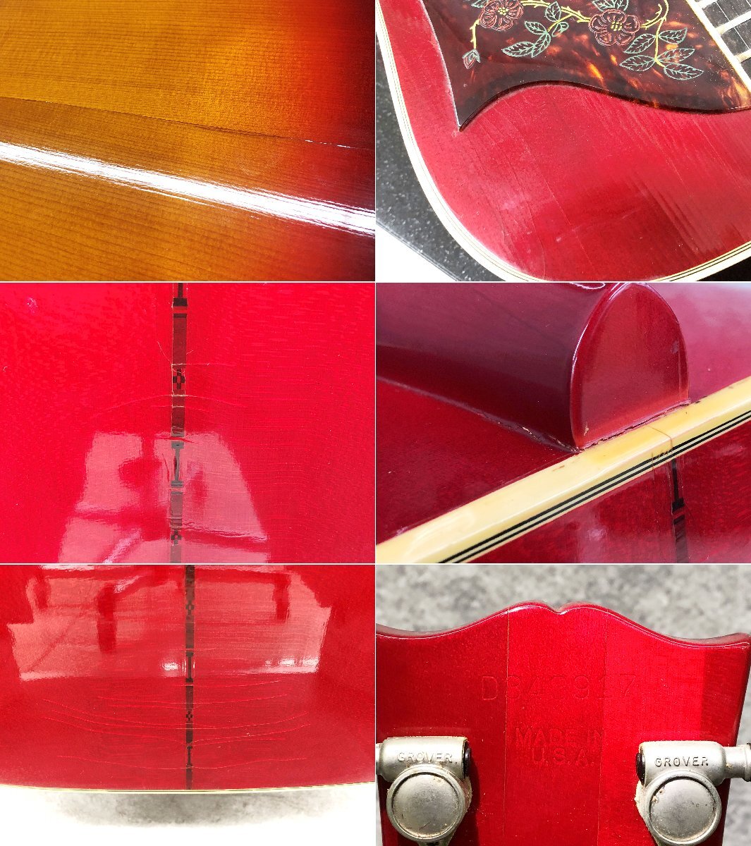 ◆外観◆ ・★外観にキズ、汚れ、使用感があります。 ・★弦長(スケール):約643mm ・★ナット幅:約43mm ・★カビ臭がします。 ・★トップ割れがございます。 |